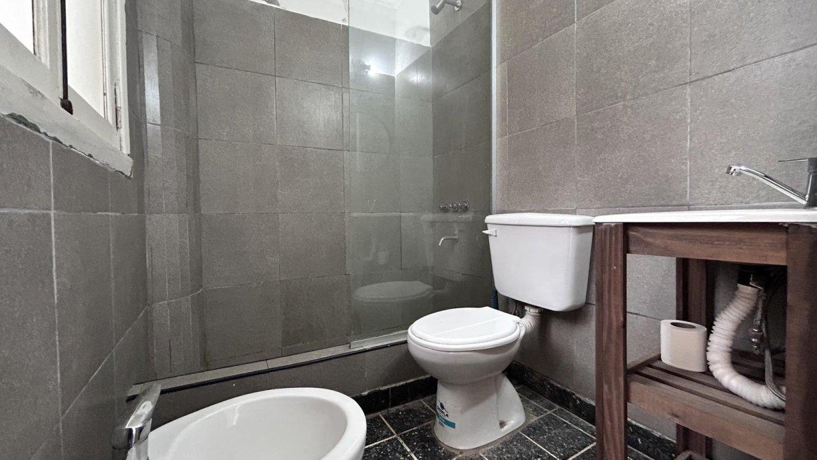 El baño es completo, totalmente renovado, con sanitarios de primera línea, vanitory, mampara y revestimientos cerámicos.