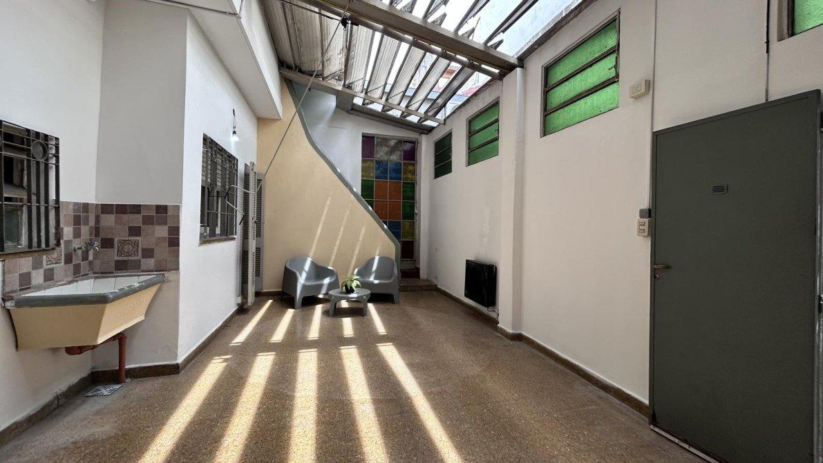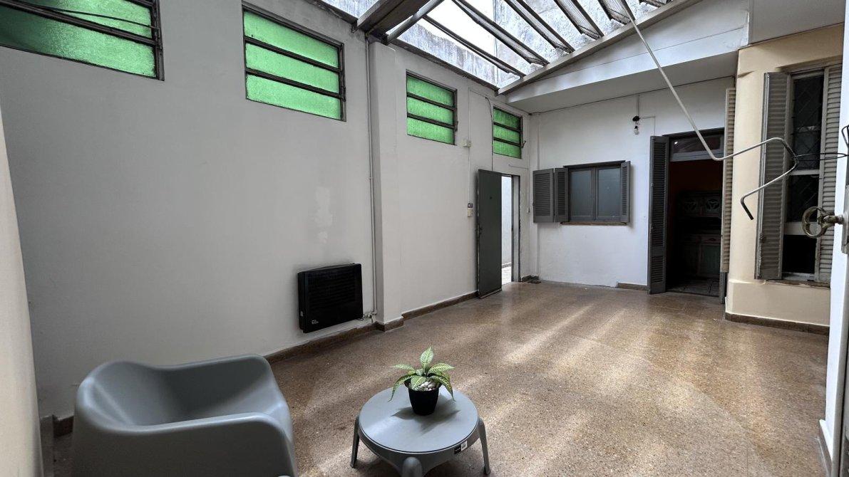 El gran patio cubierto, con techo rebatible y ventanas al pasillo, funciona como un excelente espacio social y distribuidor, aportando ventilación a todos los ambientes.