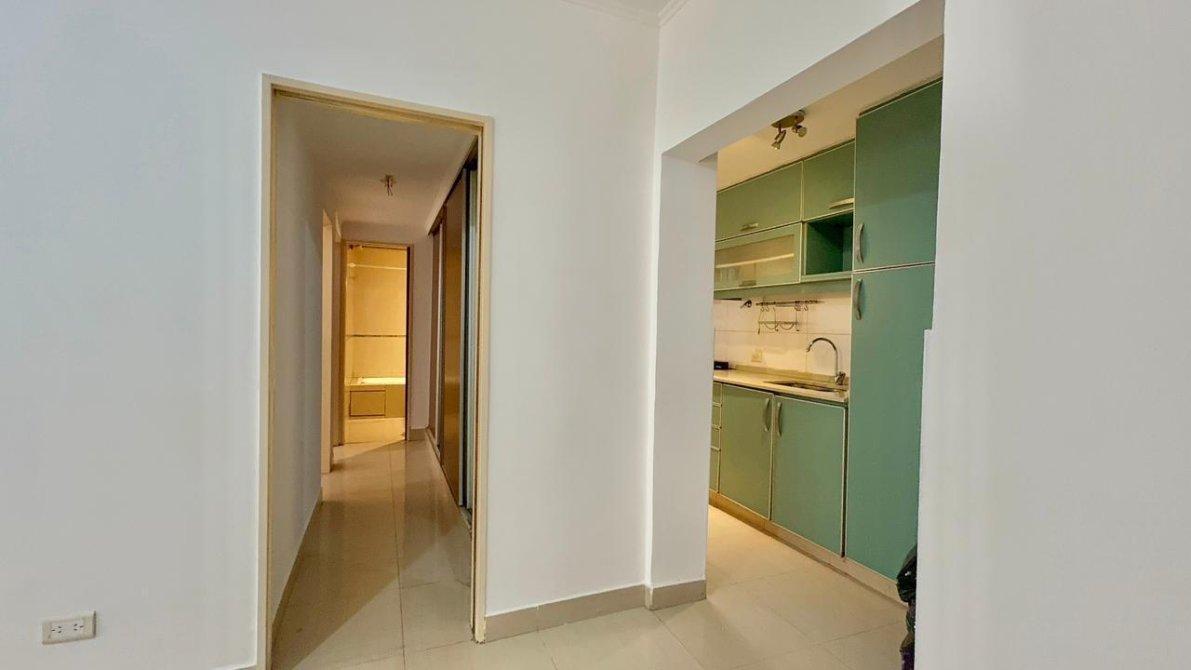 A través de un hall distribuidor, encontrás un placard de piso a techo, ideal para guardado extra, un baño completo, dos dormitorios luminosos y una cocina separada estilo americana que conecta de manera práctica cada espacio.