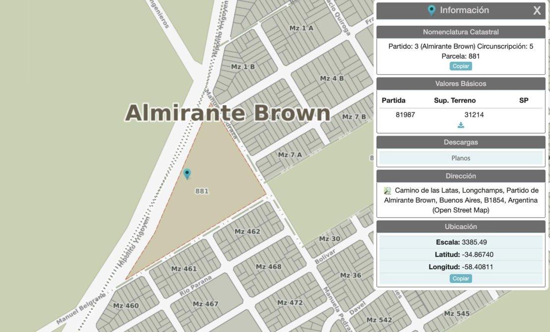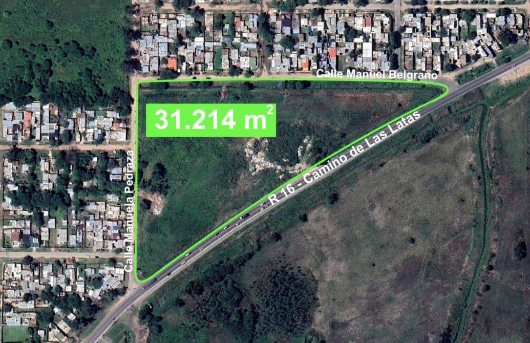Fracción de 31.214 m² estratégicamente ubicada sobre la Ruta Provincial 16, el conocido Camino de las Latas que conecta Longchamps con el nuevo corredor verde de la zona de Canning.El frente del predio se encuentra en zona B1 al estar conectado a la RP16, pensado para emprendimientos vinculados al corredor vial comercial, de servicios y actividades complementarias, mientras que la mayor parte del terreno se desarrolla en zona C3, con aptitud para usos de vivienda, comerciales urbanos y equipamientos de escala barrial o local.