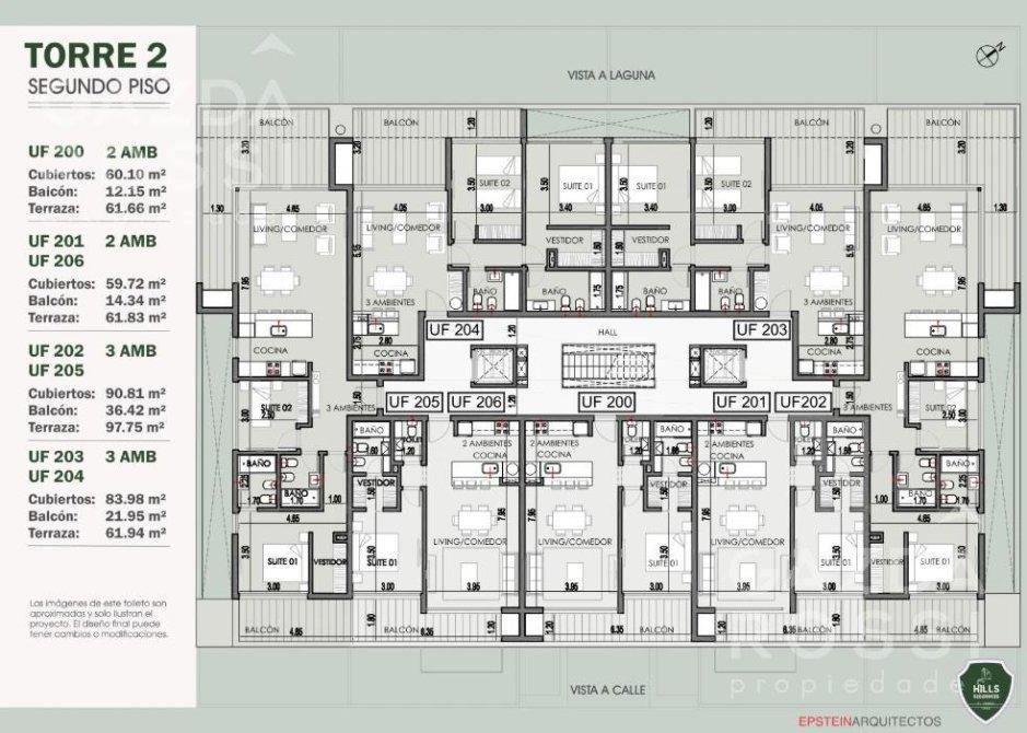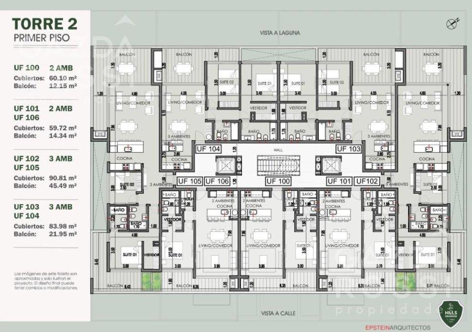 Departamento de 3 ambientes con una superficie total de 125,93 m², que incluye balcón, terraza propia y una destacada vista a la laguna, dentro del exclusivo complejo Hills Residences.