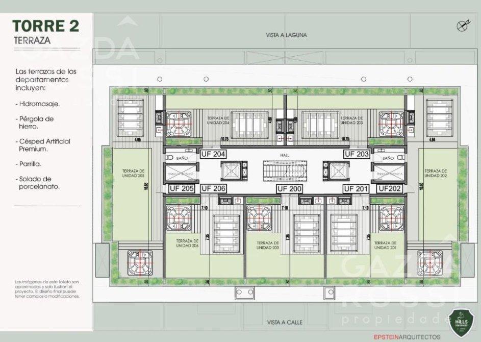 En el exterior, el departamento ofrece balcón, terraza con parrilla y pérgola, ideales para disfrutar del entorno natural y la vista a la laguna. La cochera se comercializa de manera opcional, con un valor de USD 10.000.