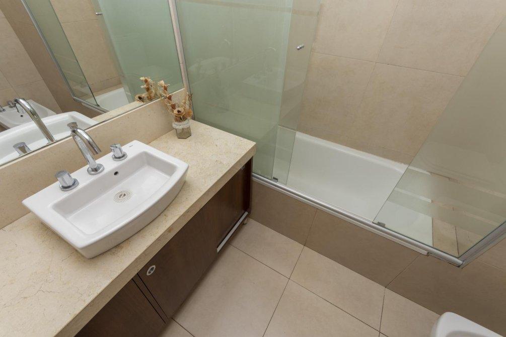 -1 baño completo que comparten los dormitorios  con espejos sistema anti empañamiento .