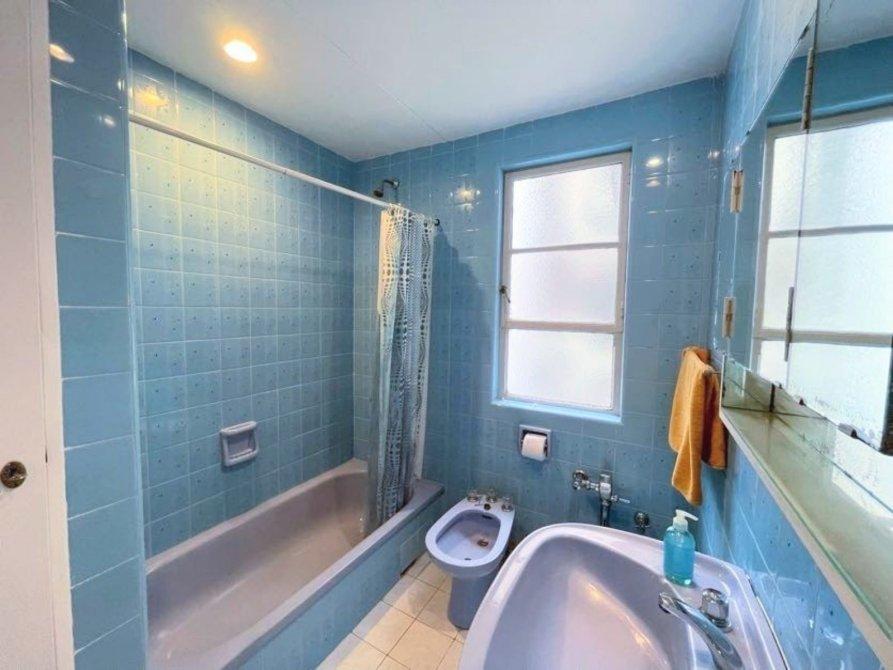 El Baño completo tiene luz natural y excelente ventilación. Tiene un amplio placard de guardado.