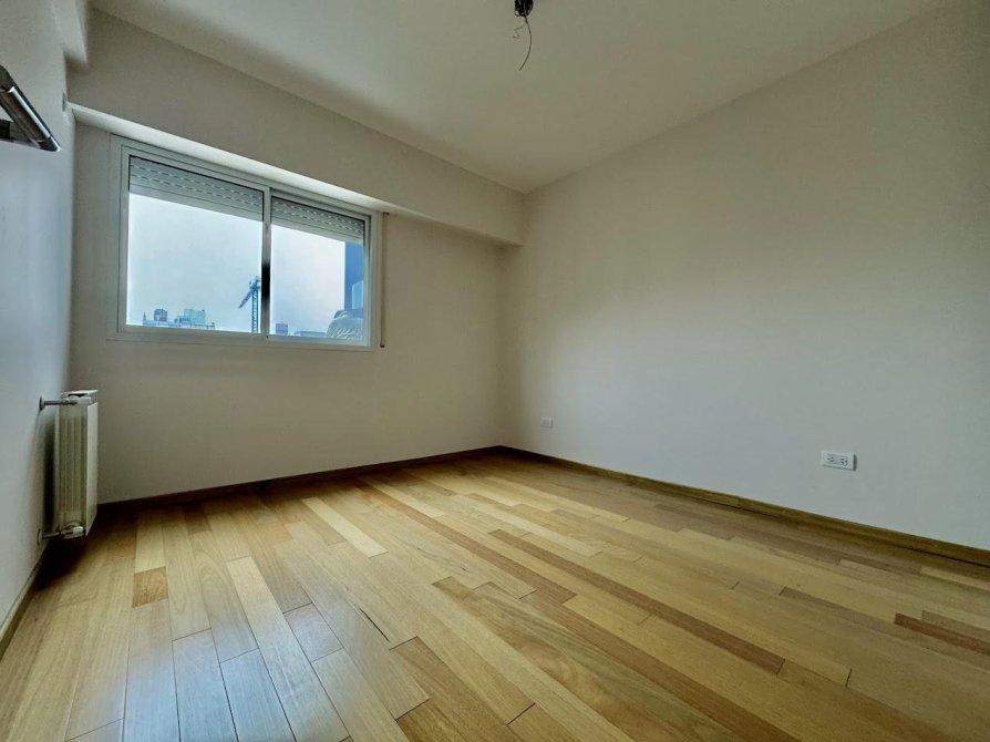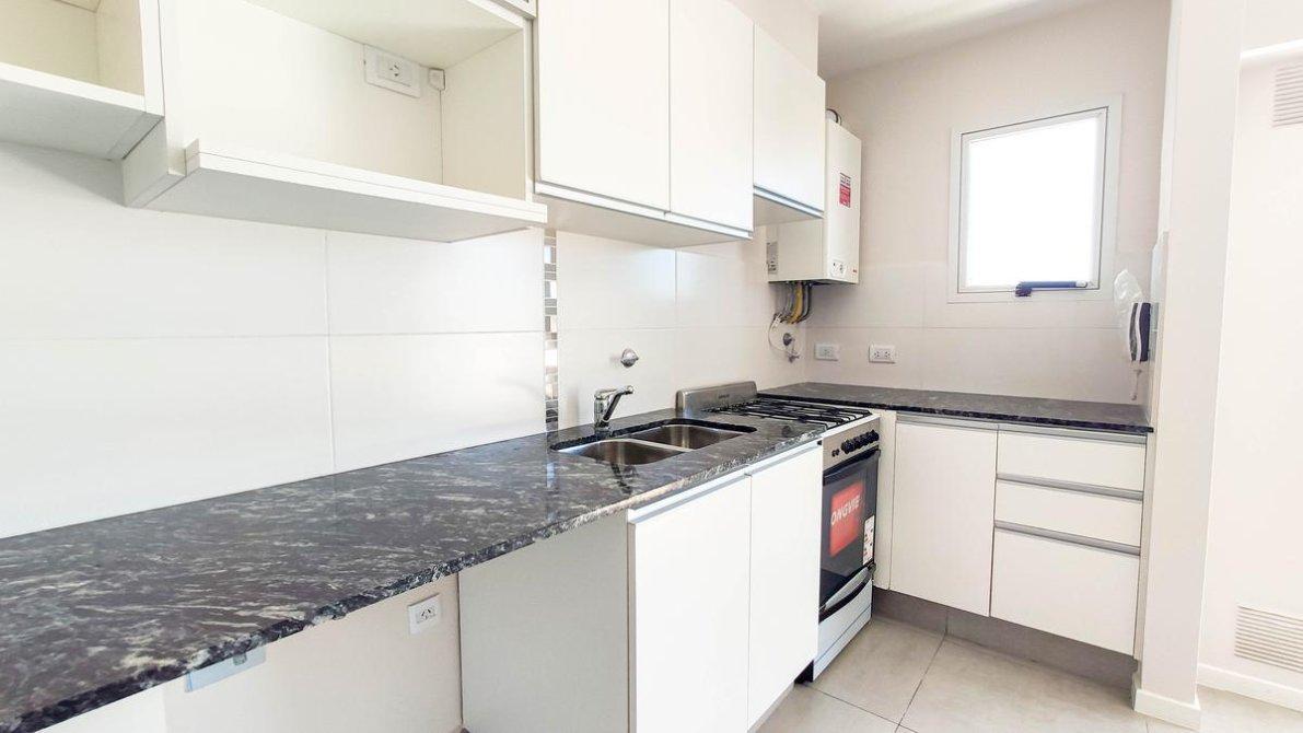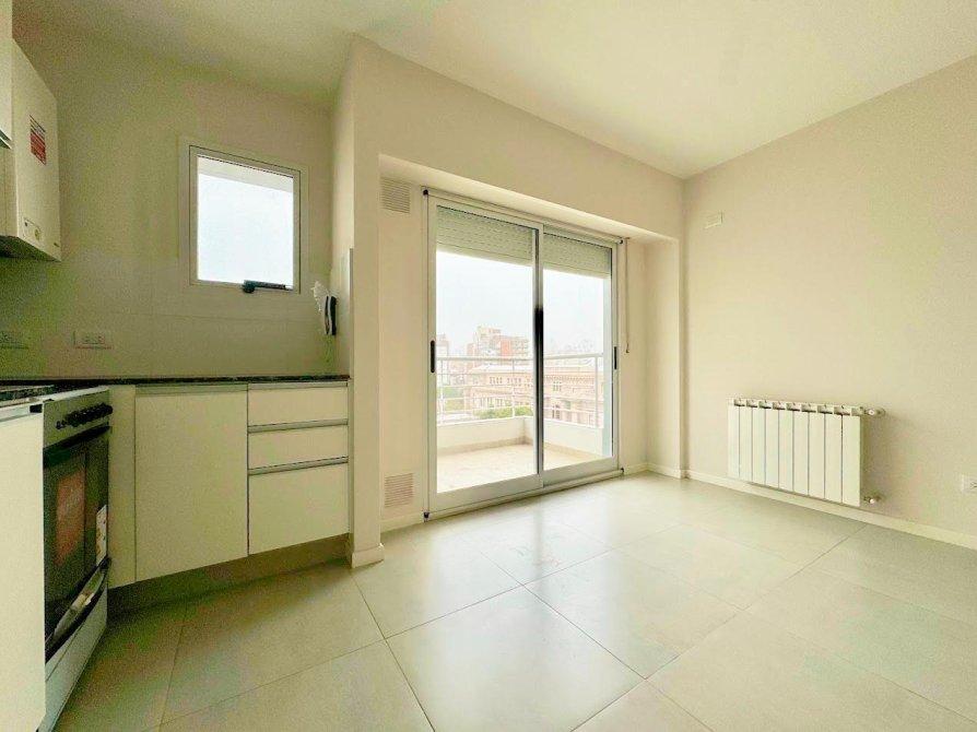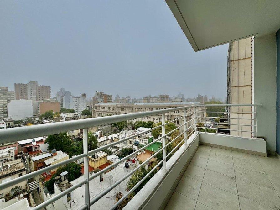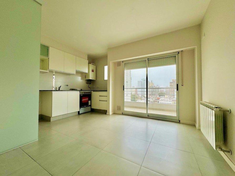 Un dormitorio al frente con orientacion norte y ventilacion cruzada en octavo piso. Cocina semi-integrada con barra desayunadora hacia living comedor, cocina 4 hornallas con horno visor y calefon, preinstalacion de aire acondicionado y conexion para lavarropas.Abertura con DVH en living comedor, baño completo con bañera, un dormitorio con salida a balcon corrido al frente y frente de placard.