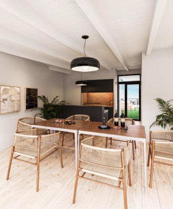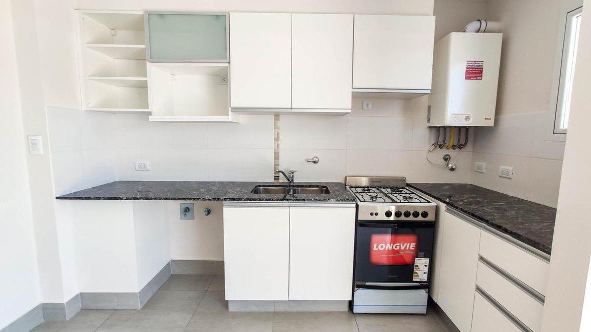 Dos dormitorios con cocina semi-integrada al living comedor. Balcon al frente con Orientacion Norte. Ventilacion cruzada. Pasillo distribuidor a un baño completo, 2 dormitorios con placares y salida a patio trasero al contrafrente. Dormitorio principal con baño en suite con vestidor.