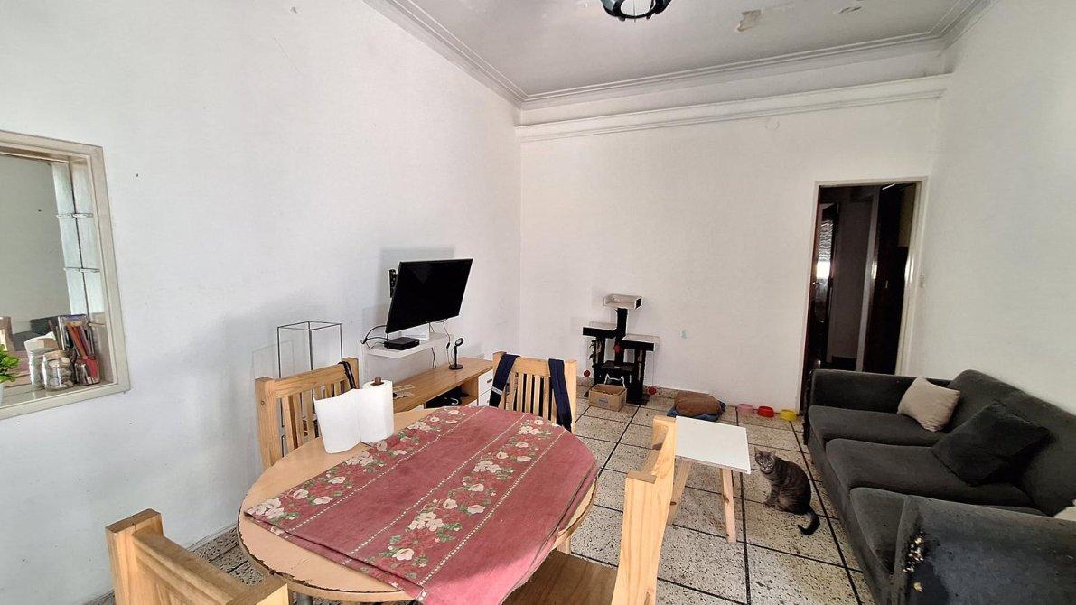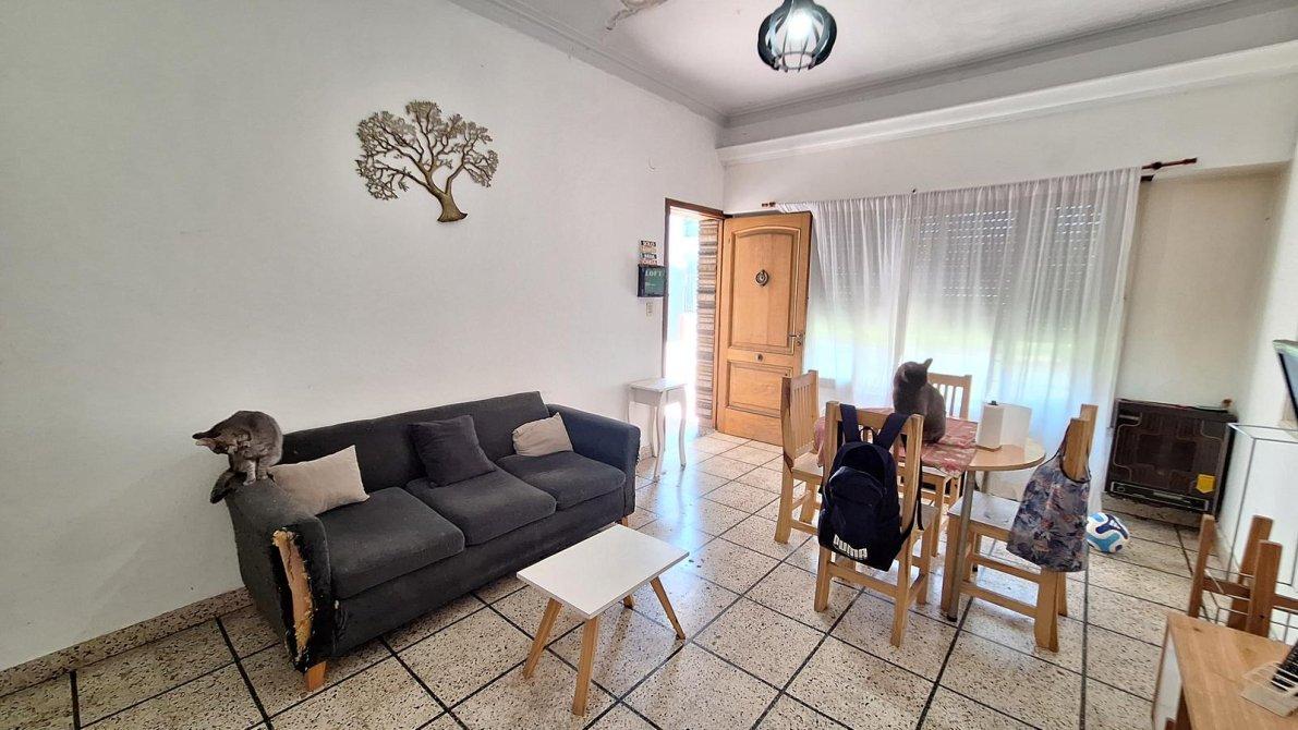 - Living - Comedor con cocina integrada + Tres dormitorios + Baño completo + patio.