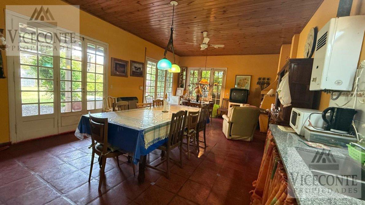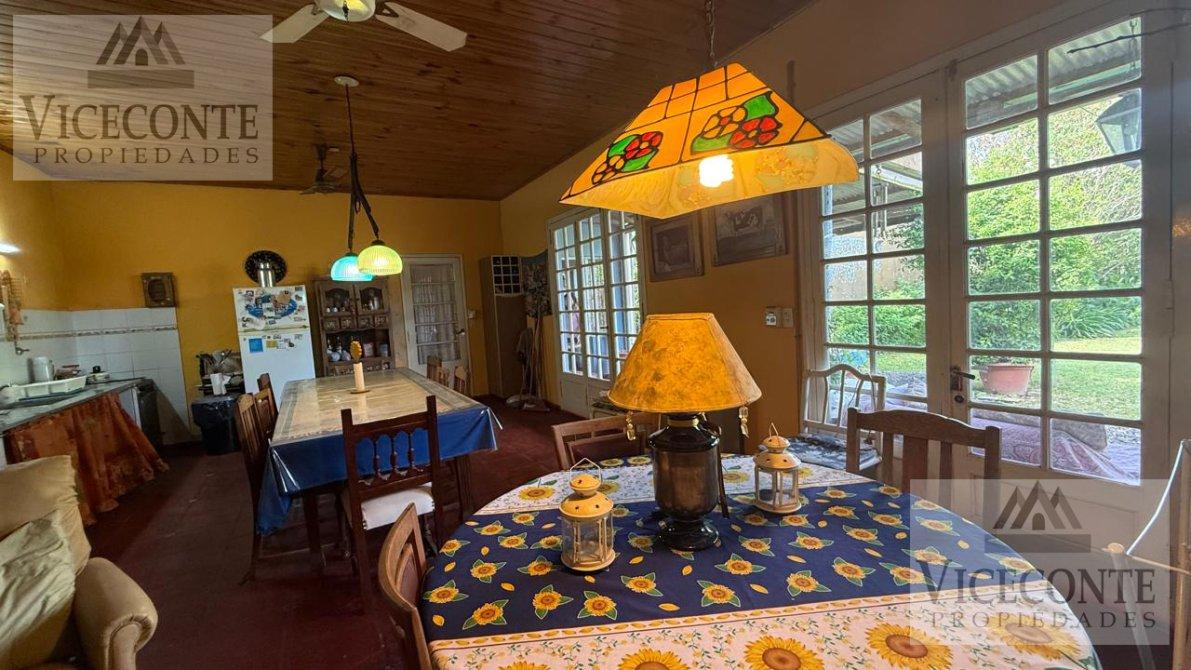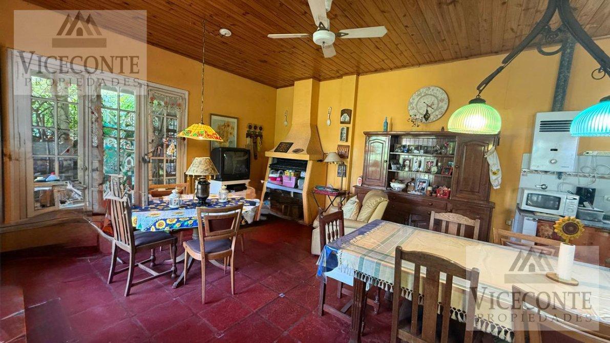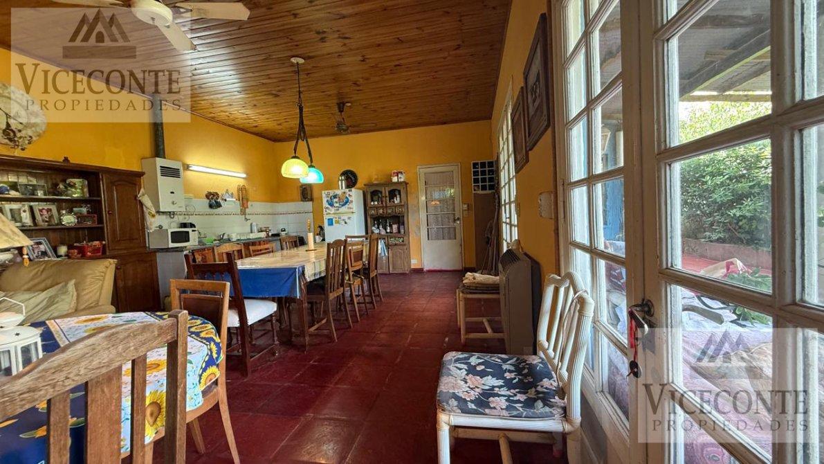 Cocina-Living-comedor, (cocina con mesada) con termotanque a gas (LONGUIE). Calefactor a gas natural (ESKABE). parrilla interna en el mismo lugar. Puerta y ventanal de madera con vidrios repartidos que permite una muy buena luminosidad y vista al patio interno. 2 ventiladores de techo. Living Star. Con calefactor a gas (EMEGE) ventanales de aluminio que dan al patio interno, pisos de mosaicos, cielorraso de madera. 1 Living-Star con calefactor a gas (EMEGE) con ventanales de aluminio que dan al patio interno, pisos de mosaicos y cielorraso de madera. 2 habitaciones, una de (4,5mts por 3,5mts) con pisos de mosaicos techo de losa, abertura de madera. Posee orificio de salida para colocación de calefactor de gas natural. Y otra de (4,5mts por 2,5mts), con pisos de mosaicos, aberturas de madera y cielorraso de madera, ventilador (Martinaza en todos los ambientes). 1 baño con ducha y banitori. Losa en toda la casa cubierta con chapa.