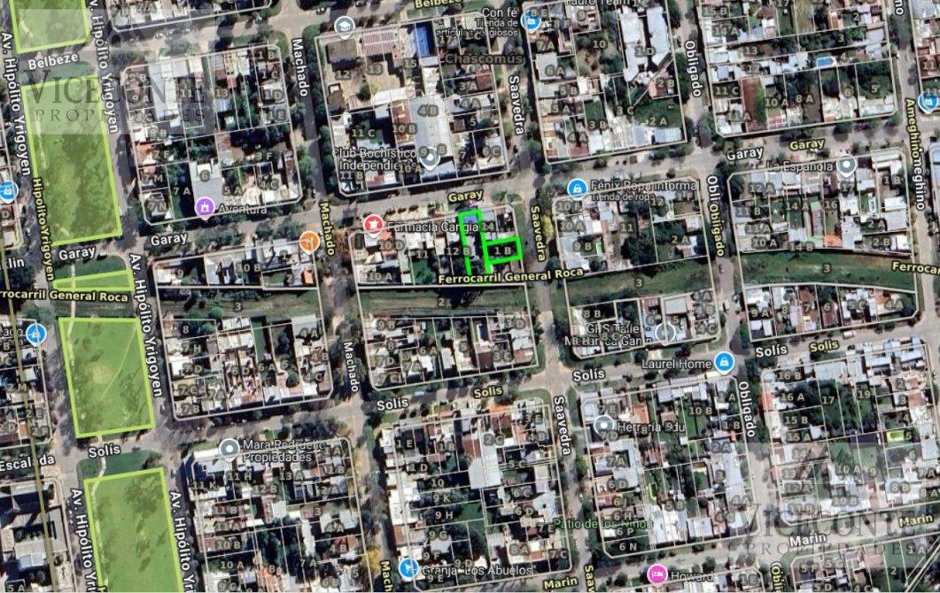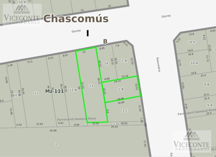ubicado en calle Saavedra nro. 185 entre Garay y Saavedra de la ciudad y partido de Chascomús. Está compuesto por una fachada de mampostería en su frente con portón de hierro y chapa que permite el acceso y egreso al lote de terreno y posteriormente a la casa principal que se encuentra ubicada al final del lote y próxima sobre la Parcela 13 con partida inmobiliaria. Posee Parquizado y vegetación. posee todos los servicios por su frente, a excepción del asfalto.