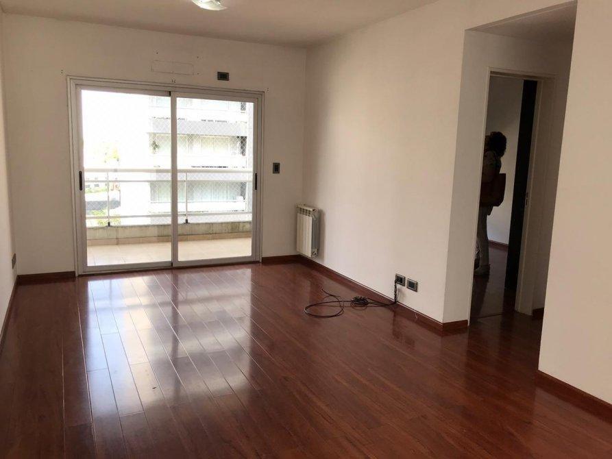 Living comedor con piso flotante, balcón, cocina con mueble de bajo y sobre mesada, 1 dormitorio con piso flotante y placard, baño completo.