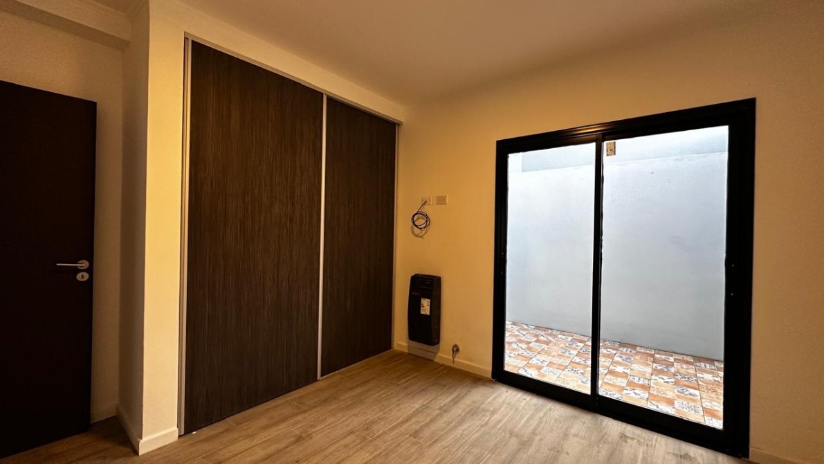 - 1 habitación principal. Con placar embutido, cajoneras y estantes para perchas,1 calefactor a gas (volcán de 2200 calorías), 1 aire acondicionado, Pisos de porcelanato símil madera. Patio de invierno cerrado con puerta balcón a la habitación.