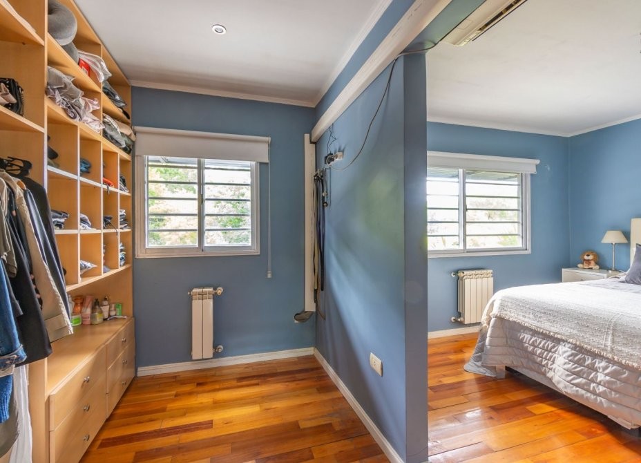 En la planta alta se desarrollan cuatro dormitorios con pisos de madera. El dormitorio principal cuenta con vestidor, mientras que los restantes poseen placard. Completa este nivel un baño completo.