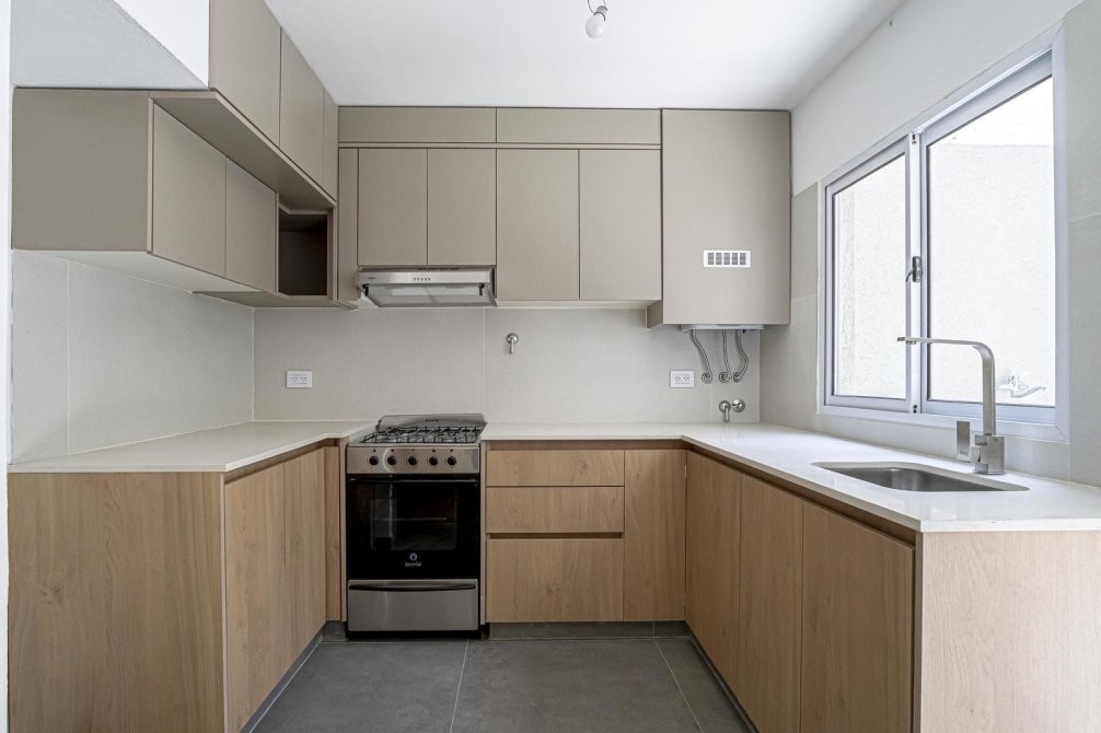 La cocina esta equipada con muebles sobre y bajo mesada, y un lavadero independiente, facilitando las tareas cotidianas.