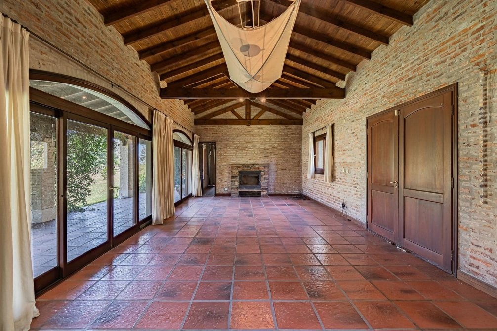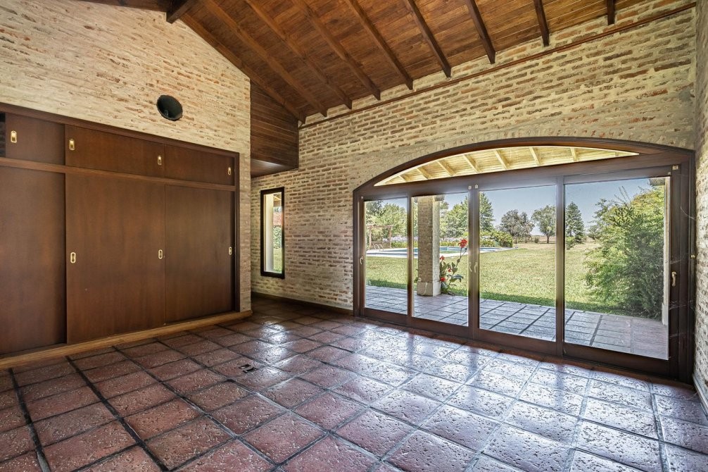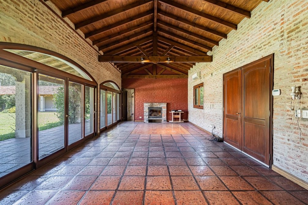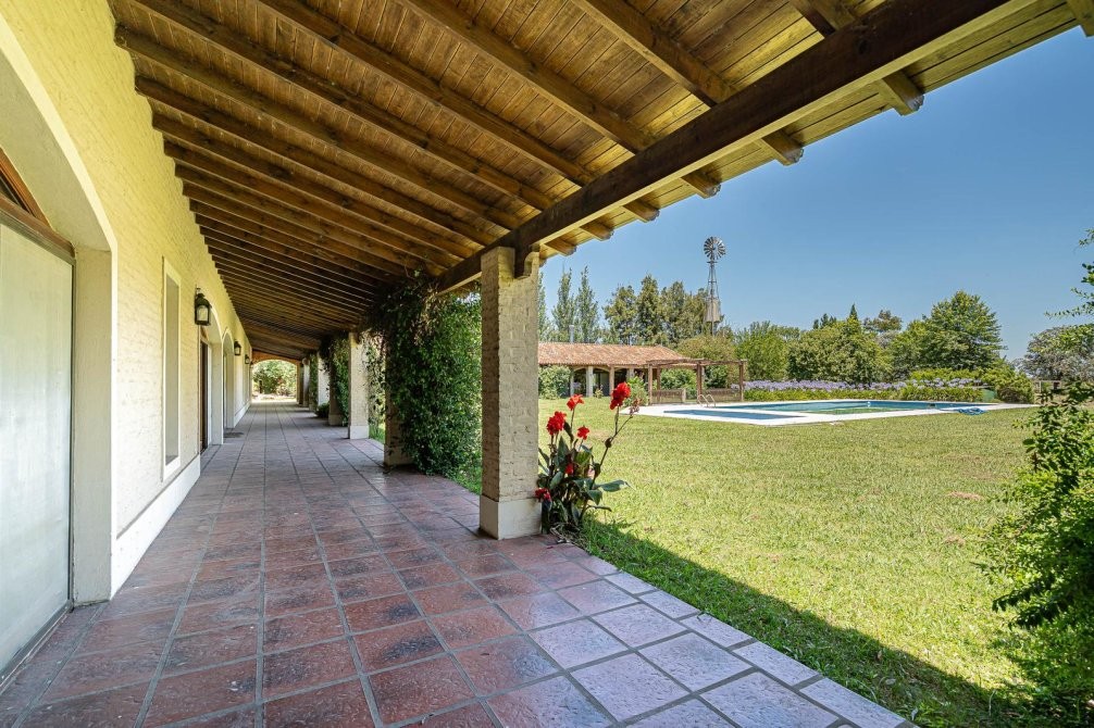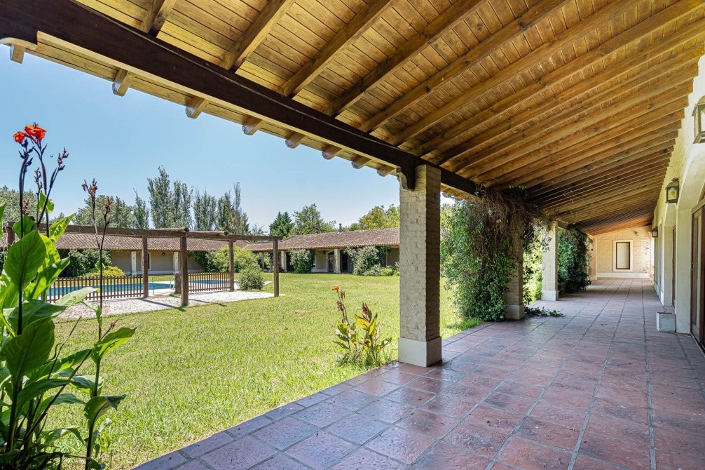 Conjunto tipo villa italiana (1 ha) con destacable calidad constructiva: tres volúmenes en “herradura” que organizan la propiedad. Dos cuerpos son viviendas completas y el tercero es el área social (gran quincho con vestuarios). Galería longitudinal que vincula los tres volúmenes, patio central con pileta principal + pileta de niños y parquización profesional. Barrio privado con seguridad 24 hs. Propiedad recientemente deshabitada, lista para ocupar, con escritura inmediata. Expensas moderadas.