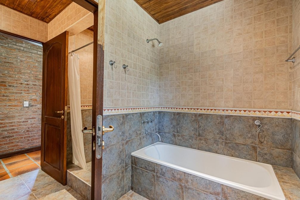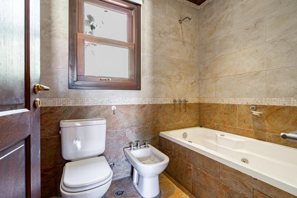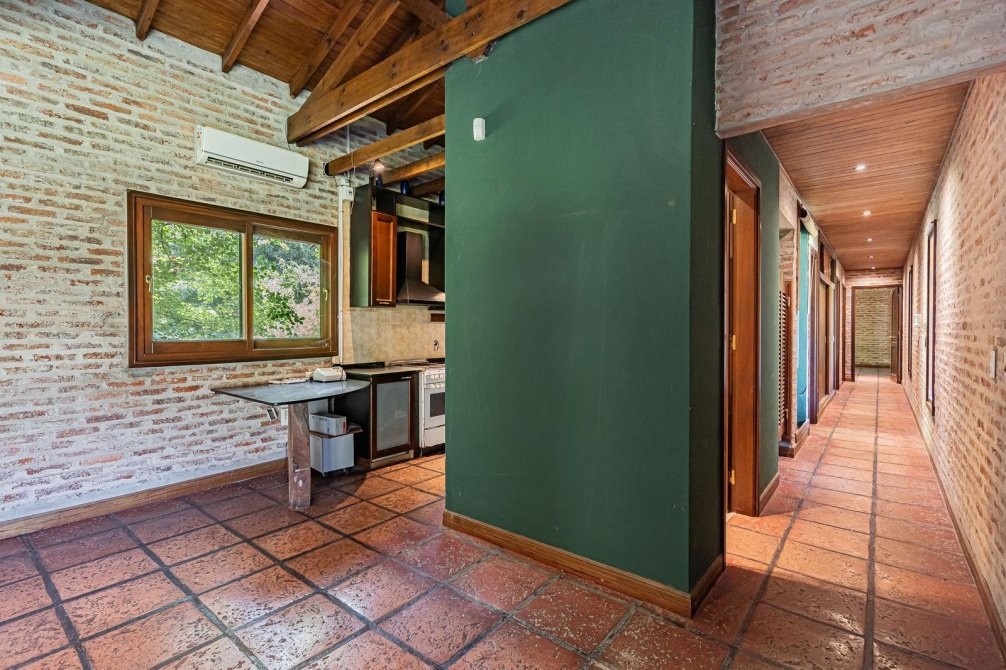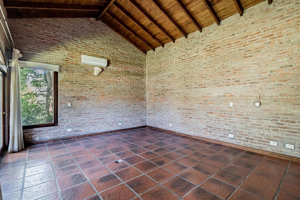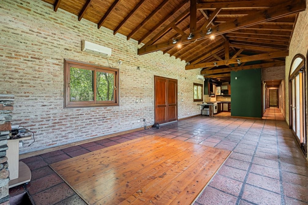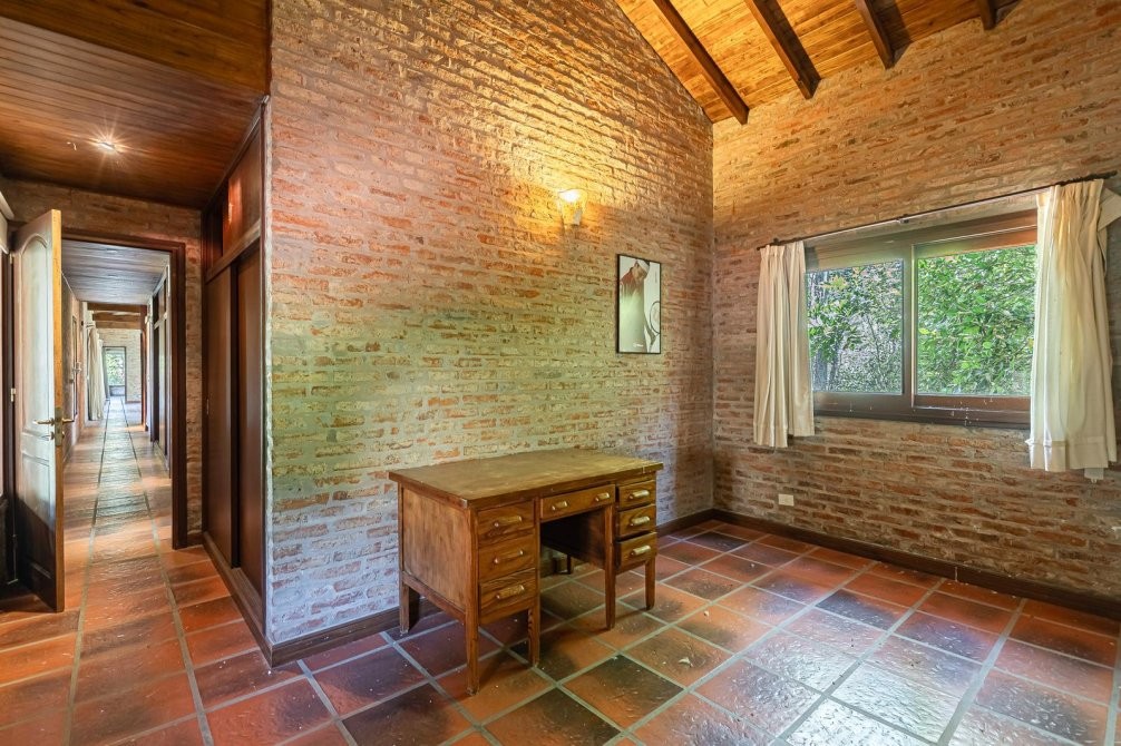 Conjunto tipo villa italiana (1 ha) con destacable calidad constructiva: tres volúmenes en “herradura” que organizan la propiedad. Dos cuerpos son viviendas completas y el tercero es el área social (gran quincho con vestuarios). Galería longitudinal que vincula los tres volúmenes, patio central con pileta principal + pileta de niños y parquización profesional. Barrio privado con seguridad 24 hs. Propiedad recientemente deshabitada, lista para ocupar, con escritura inmediata. Expensas moderadas.