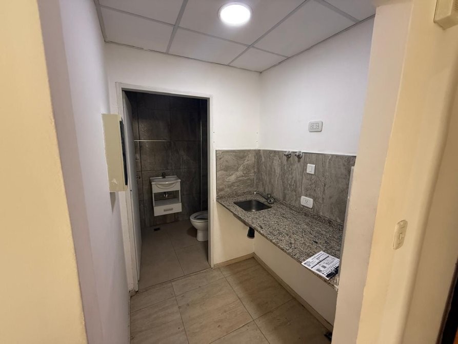 Incluye un sector de kitchenette con mesada de granito, bacha, conexión para anafe o dispenser y múltiples tomas eléctricas.