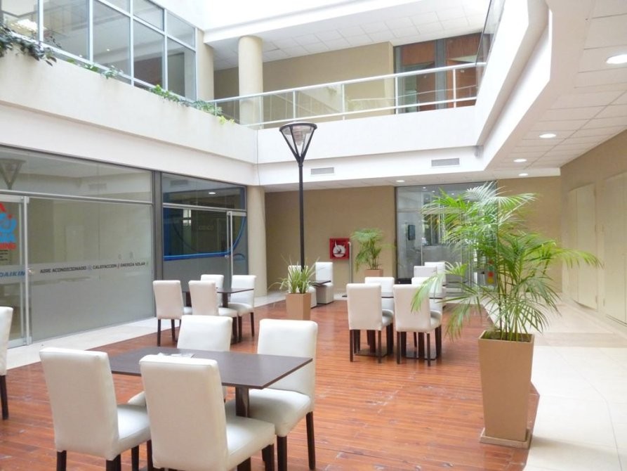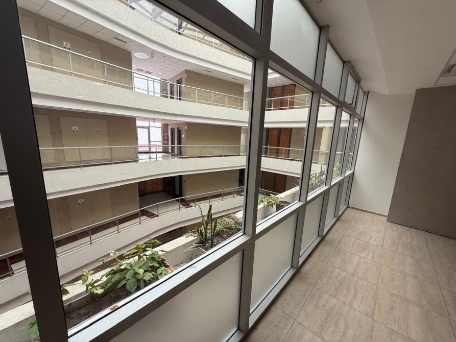 Cuenta con una sala principal con amplios ventanales de piso a techo que otorgan excelente iluminación natural y vista al interior del edificio. Posee una división interna que permite generar un despacho privado o sala de reuniones independiente.