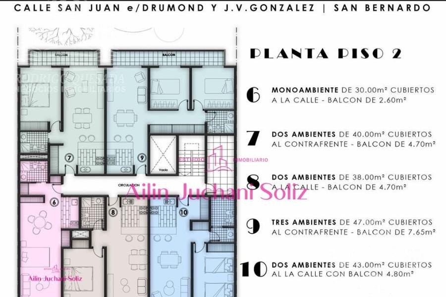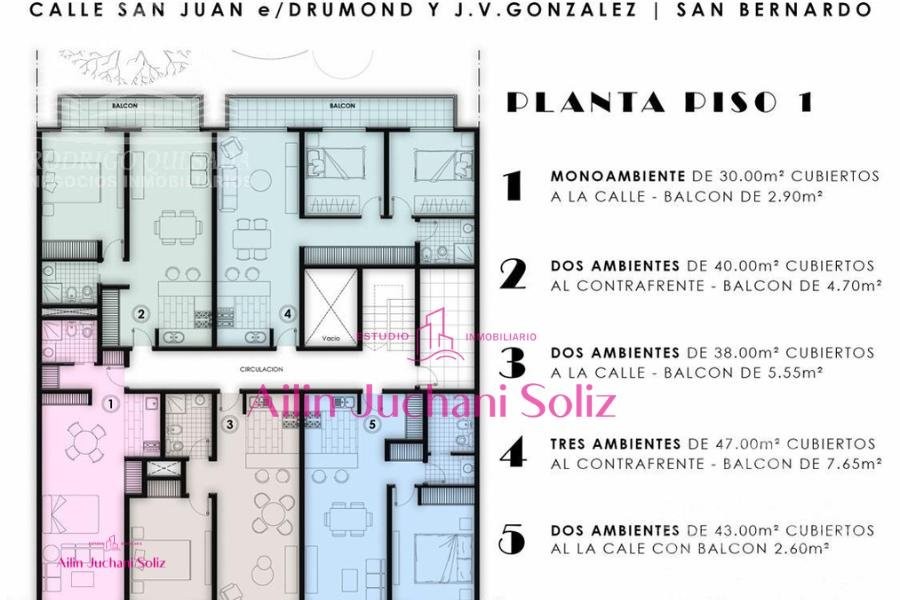 UF 4 ----- TRES AMBIENTES AL CONTRAFRENTE --- USD 58.650 ---- Financiado: USD 63.750 ----- 47 m² cubiertos + balcón 7,65 m² UF 5 ----- DOS AMBIENTES AL FRENTE                                                                                               ------- 43 m² + balcón 2.6 m² (frente)