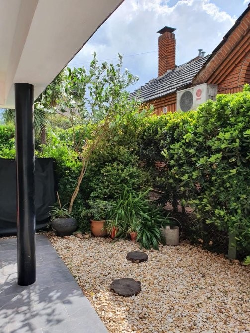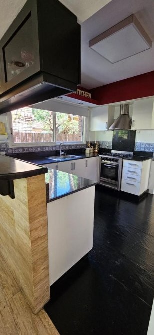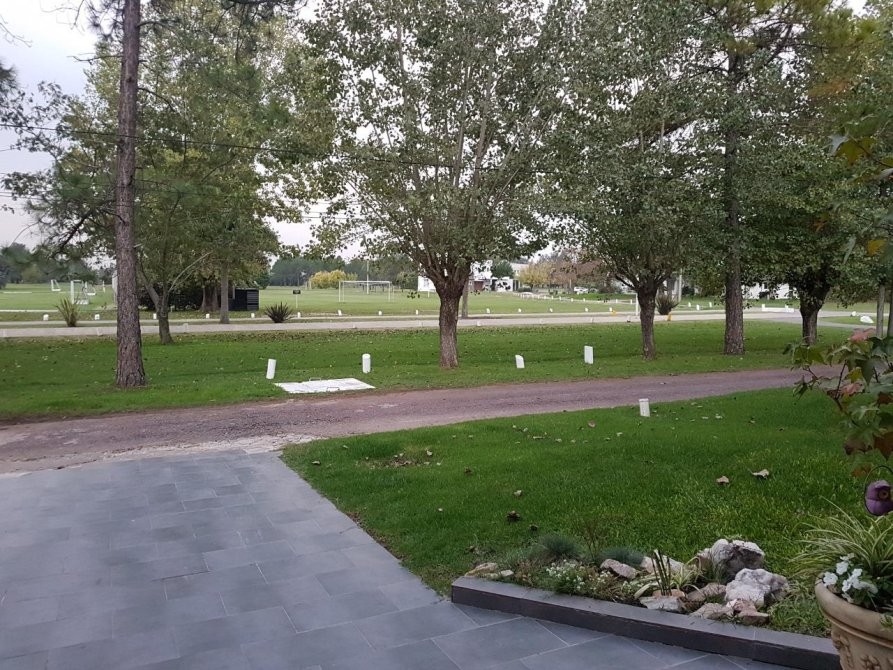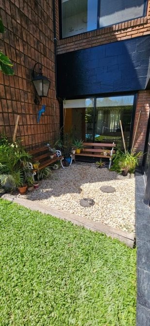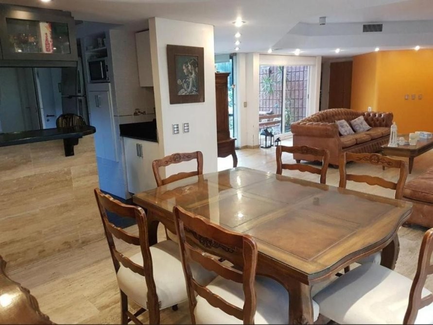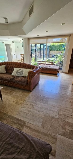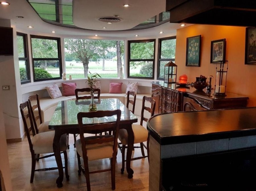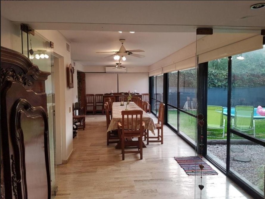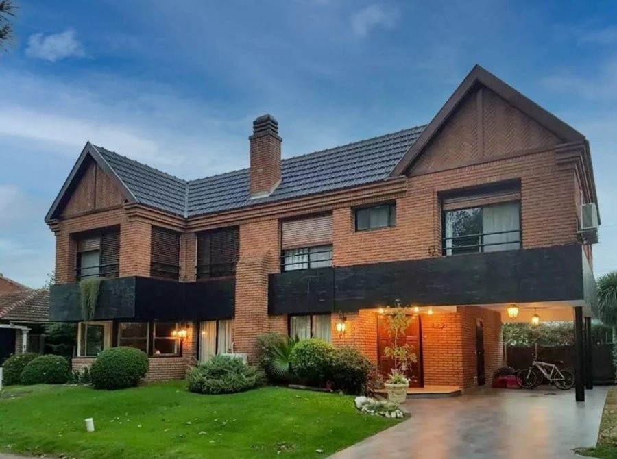 En planta baja, se accede a un amplio living en forma de “L” con hogar a leña, que brinda calidez y carácter al espacio. El comedor se integra a la cocina mediante una barra desayunadora, generando un ambiente cómodo y practico. Desde allí se accede a un gran quincho vidriado con salida directa al parque, ideal para reuniones sociales durante todo el año. La planta baja se completa con un dormitorio de servicio en suite, toilette de recepción, baulera y parrilla a gas. Toda la planta cuenta con pisos de mármol Travertino. Entrada para vehículo.