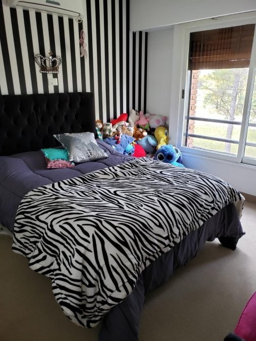 En planta alta se desarrollan cuatro dormitorios. Dos de ellos en suite con vestidor, destacándose la suite principal que cuenta con jacuzzi. Los restantes dormitorios disponen de placard y comparten un baño completo adicional, sumando un total de tres baños completos en esta planta. Además, posee un amplio playroom de aproximadamente 45 m², con gran vista al parque, y un baño completo adicional, ideal como espacio recreativo, sala de estar o escritorio.