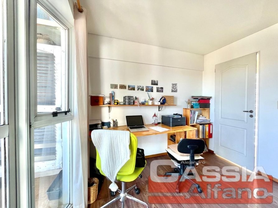 SUPER Amplio Depto. en CUARTO piso c/ascensor, "CON Cochera" incluída en valor Alquiler. Acceso a Hall central, PUERTA con cerradura de seguridad, P.Baja: Amplio Living-Comedor pisos CERÁMICOS, COCINA semi integrada con pasaplatos desayunador en madera Cedro, Alacenas y vitrina en bajo-mesada, estantes y repisas, Amoblamientos Bajo mesada completos, alacenas en alto, pequeño organizador, mesada en granito con bacha lavaplatos, griferías en monocomando, con artefacto de cocina 4 hornallas y horno a gas natural instalado y CALDERA a gas natural CON RADIADORES, espacio para microondas. Campana extractora/purificador de aire acero inox. Caja elèctrica con llaves térmicas y disyuntor diferenciado reglamentario. Todo revestido en cerámicos. LIVING-COMEDOR con amplio ventanal al frente y al balcón TERRAZA, UN dormitorio con placard y balcón al contrafrente, UN Baño totalmente instalado, Escaleras DE MADERA super luminoso! que comunica con la P.Alta: Hall distribuidor con placard amplio y, pisos vinílico simil madera, DORMITORIO Ppal. al frente, piso vinílico, amplio ventanal muy luminoso, Posee otro placard empotrado. BAÑO Compartimentado completo, Vanitory completo mesada marmol, bacha y griferías completas, espejos- COCHERA descubierta en PLANTA BAJA (FIJA) incluída en valor Locativo.
