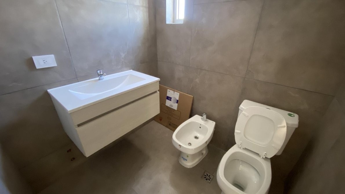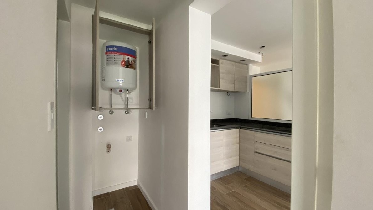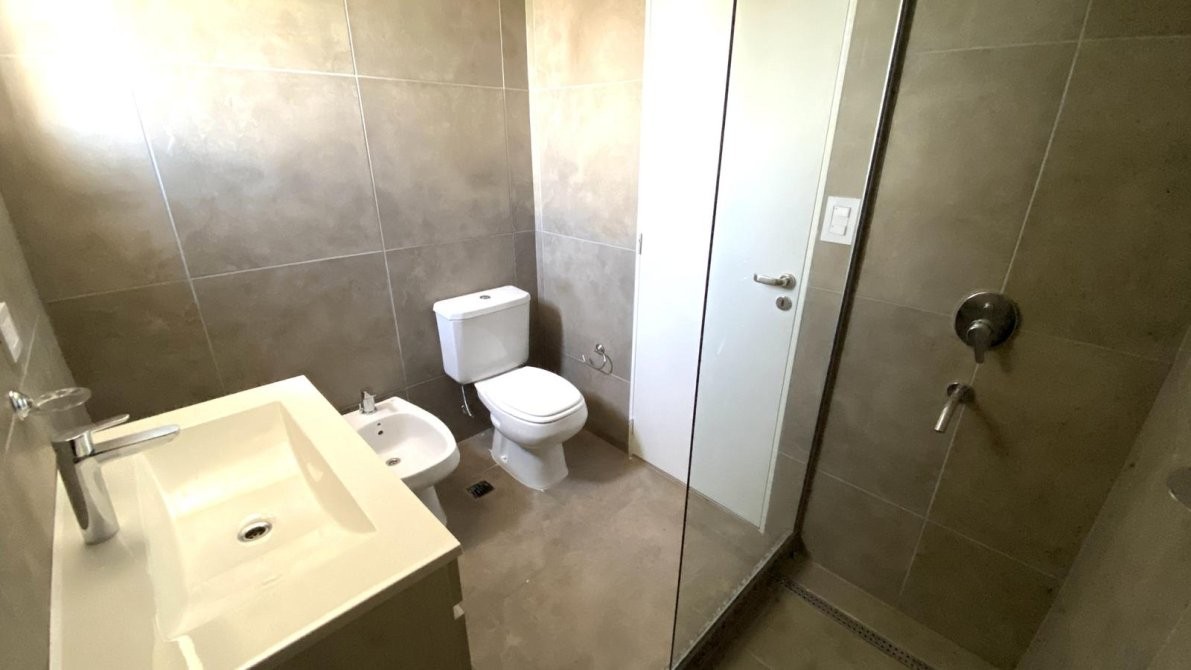 El baño cuenta con ducha monocomando, mampara de vidrio, sanitarios y griferías de primera calidad, vanitory flotante, ventilación natural y revestimiento de paredes completo.
