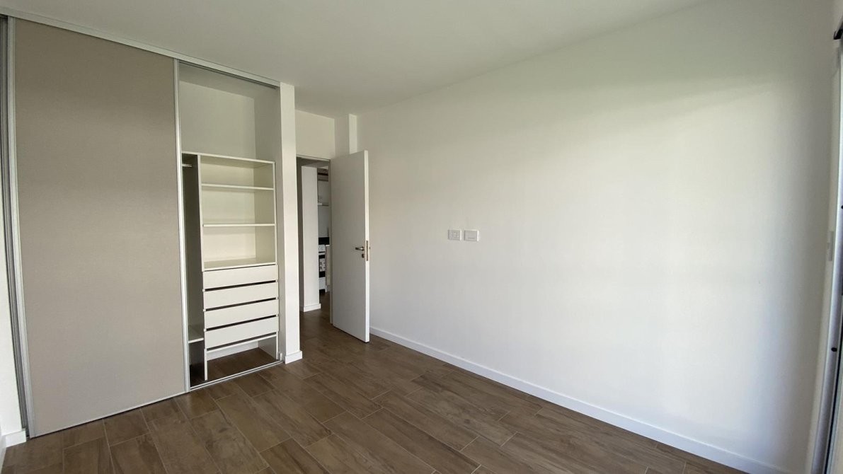 El dormitorio cuenta con placard empotrado con puertas corredizas de dos hojas, la cual una de ellas tiene espejo y ventilacion natural con salida al balcón