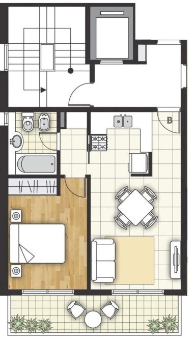 Cuenta con 39,70m2 cubiertos, y 9,20m2 de balcón, encerrando una superficie exclusiva de 48,90 metros cuadrados.