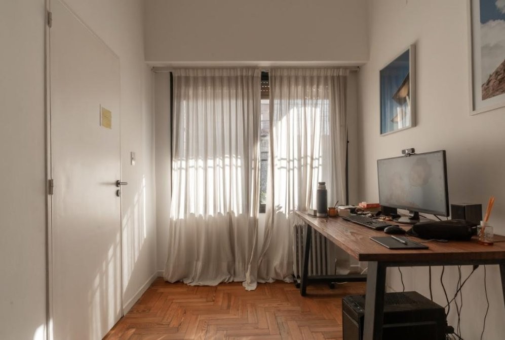 Living comedor amplio.  Cocina comedor diario. Estudio, posible escritorio o tercer dormitorio.