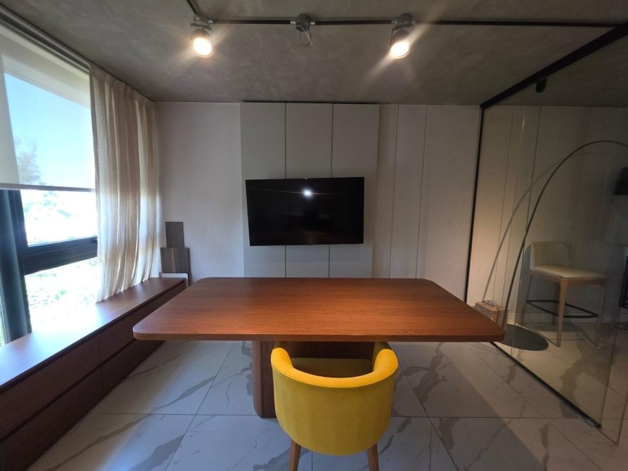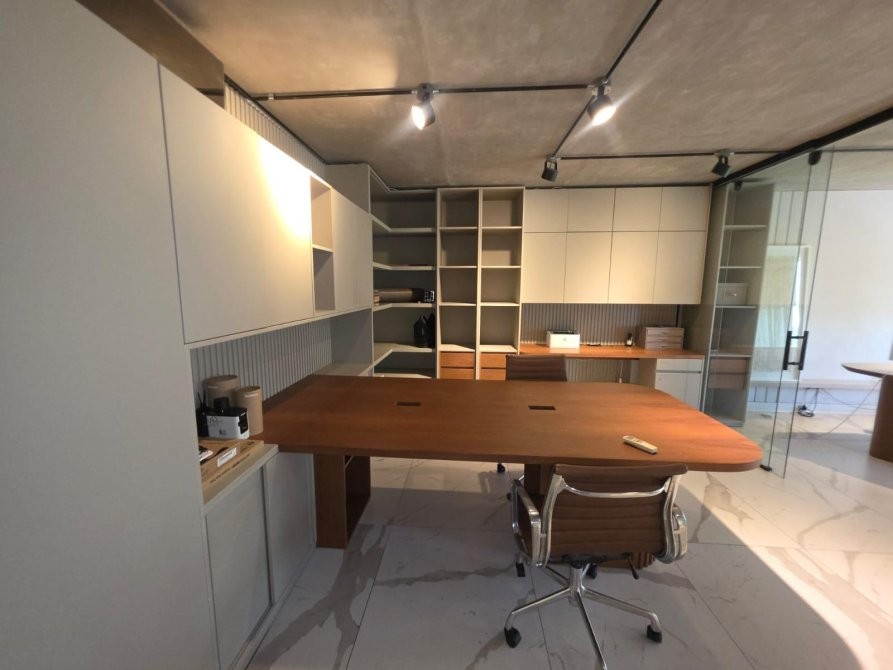 •  Mobiliario moderno: mesa de reuniones, sillas, estanterías