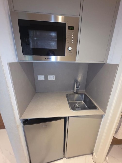 •  Kitchenette equipada: heladera, microondas, bacha, muebles