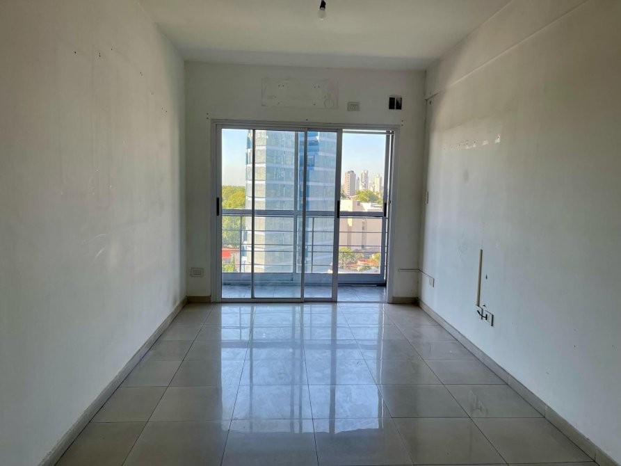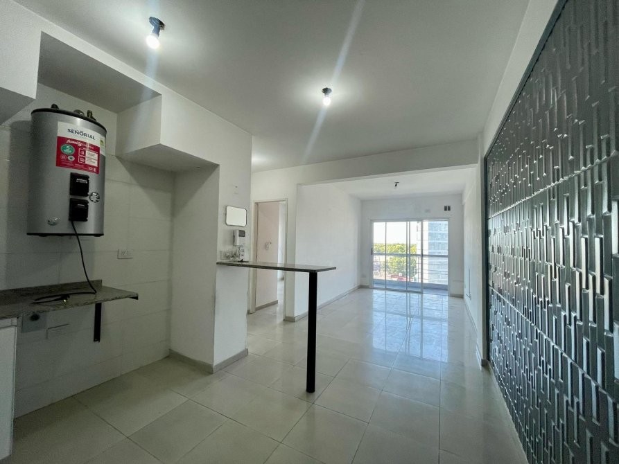 Cuenta con una cocina integrada al living comedor, lo que brinda un espacio abierto y luminoso. El departamento tiene un amplio balcón, ideal para disfrutar al aire libre. Además, dispone de un baño completo y un cómodo dormitorio.