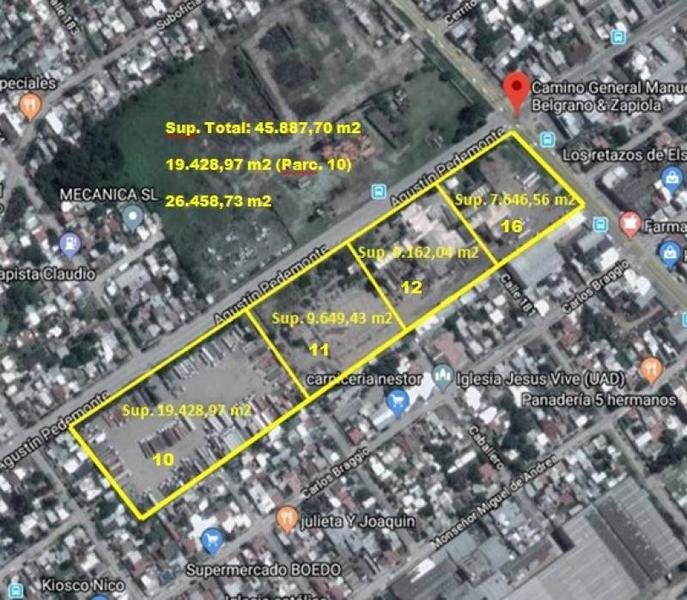 Importante Fracción de 45.887 m2 (aprox.). Antiguo ex frigorífico deshuesado (INGA); único en la zona con 86 m. de frente (aprox.) sobre Camino Gral. Belgrano. Ideal para emprendimientos o logística.