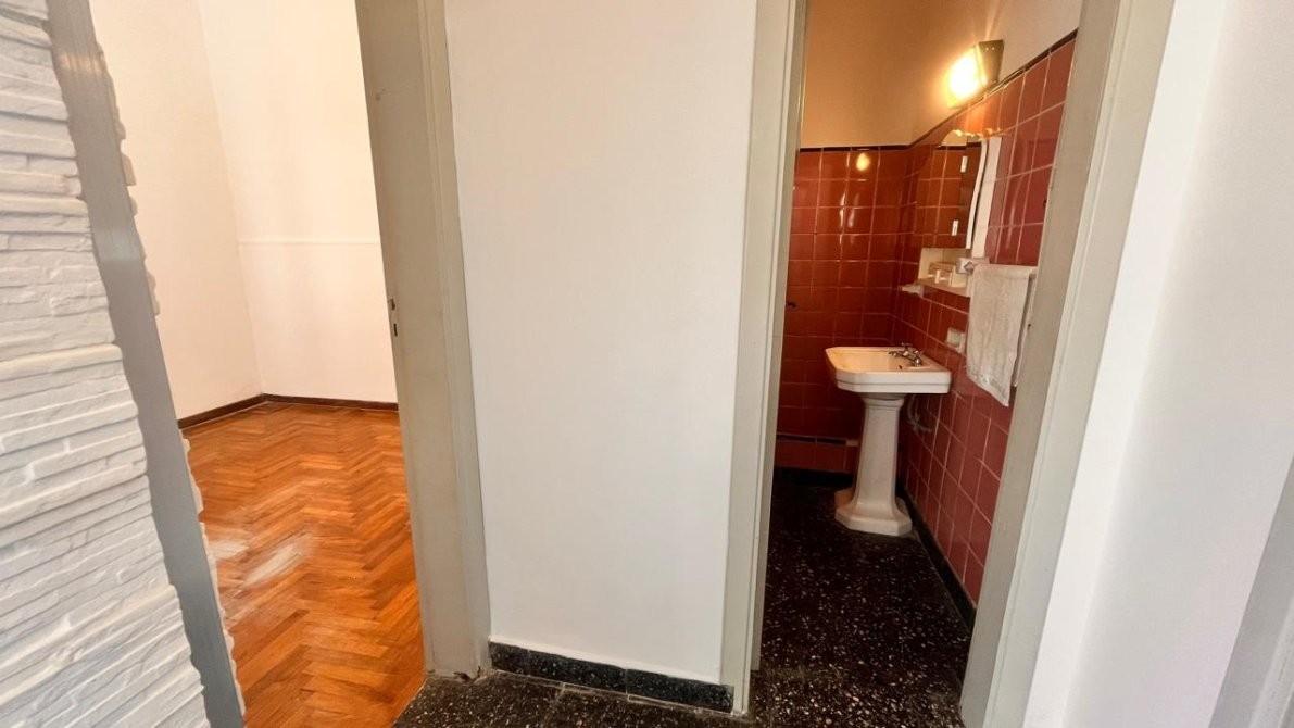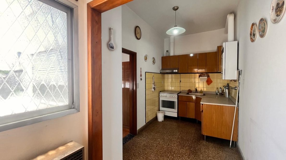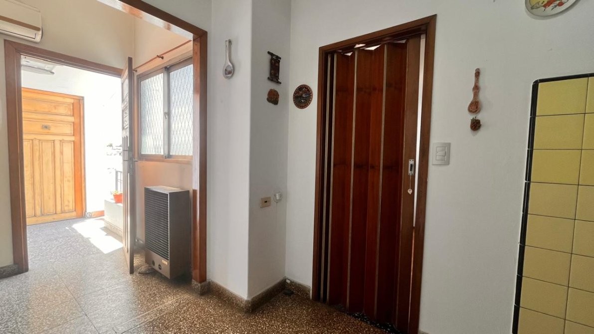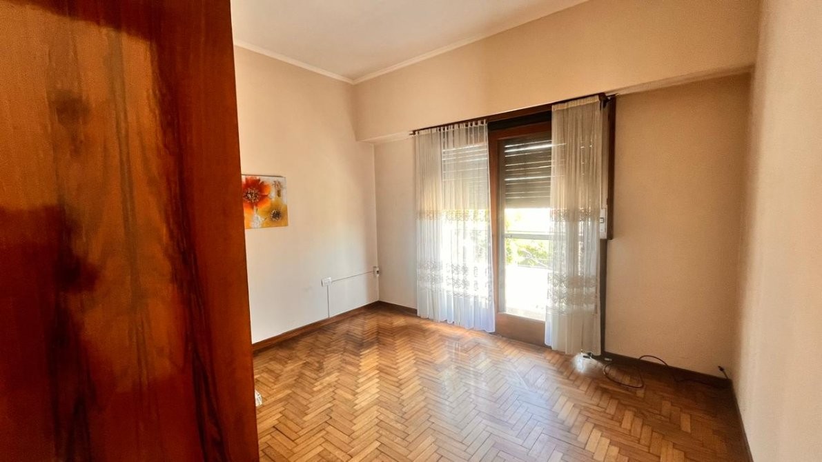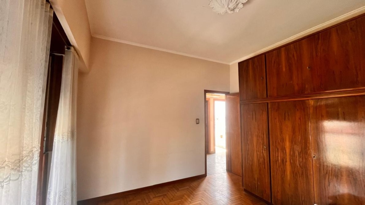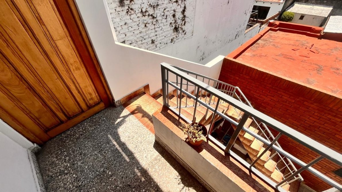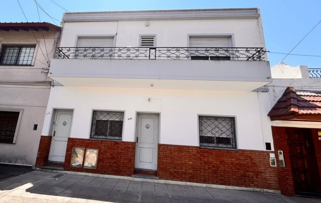 - La planta alta alberga otro hogar: un departamento de tres ambientes, con doble circulación. Se accede desde el patio o de manera independiente por pasillo. Un hall de distribución conecta los ambientes: amplio living comedor con salida a balcón al frente, cocina comedor generosa y completamente instalada, dormitorios con pisos de parquet y baño completo. Espacios bien definidos, luminosos y pensados para disfrutar.
