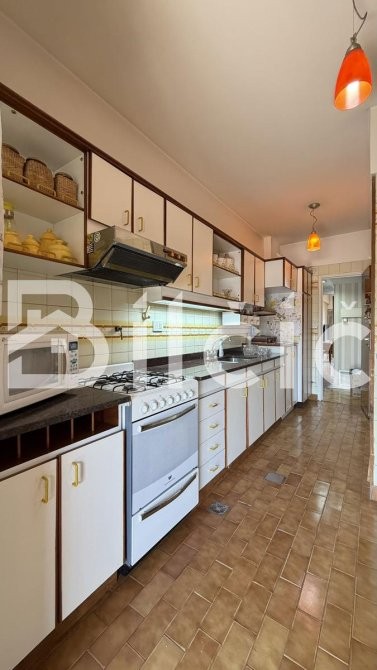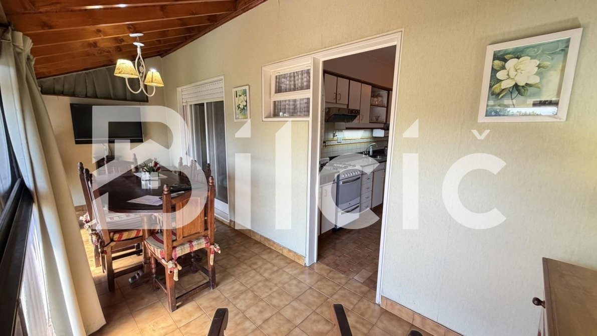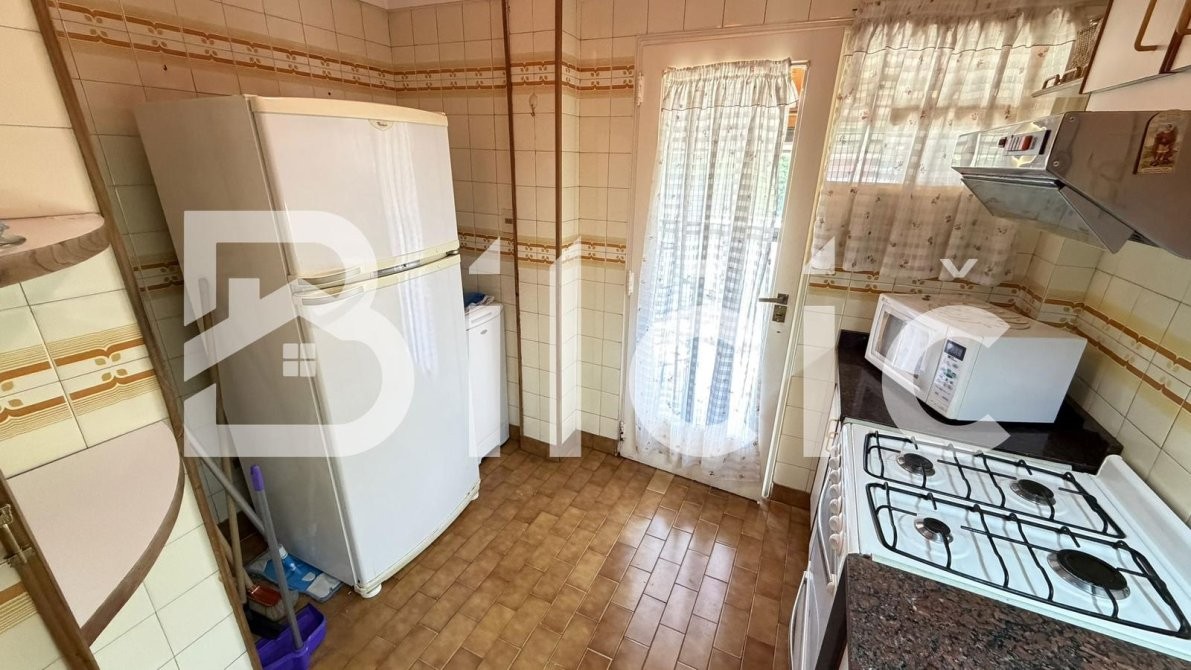 La cocina, cómoda y muy bien equipada, cuenta con espacio para una mesa tipo desayunador, ideal para el uso diario.