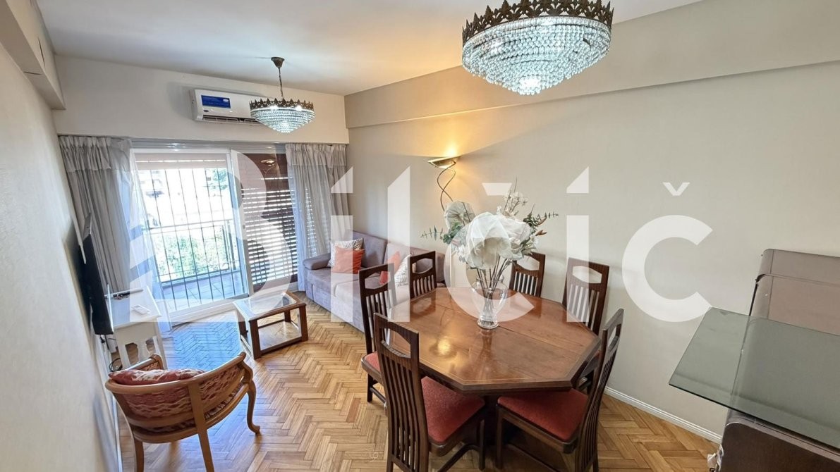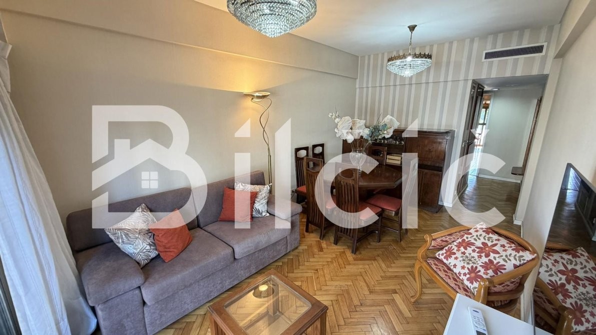 El amplio living comedor, con aire acondicionado, se abre a un balcón aterrazado al frente, ideal para disfrutar del aire libre.