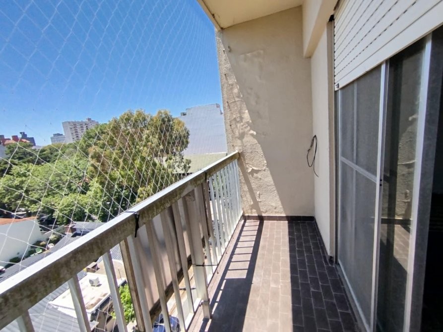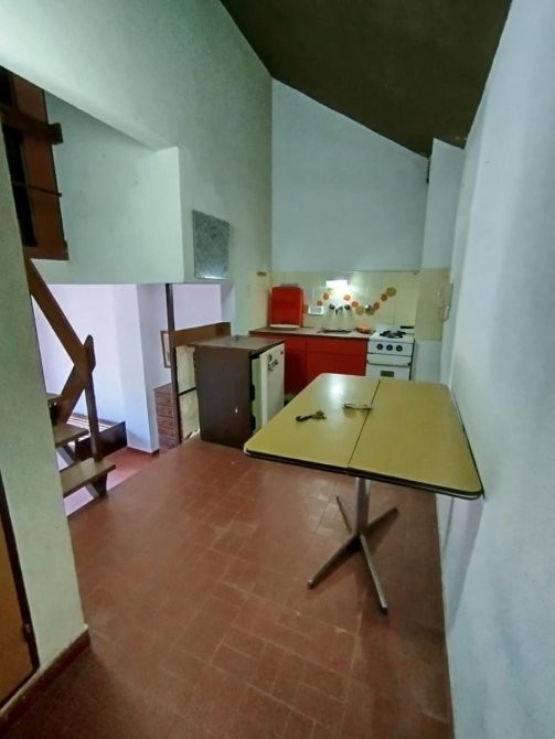 El departamento se encuentra en 6to piso por ascensor. Las dimensiones del mismo son amplias, ingresando nos encontramos con cocina comedor, y por escalera en desnivel se encuentra el living, que dispone de balcón lateral. Tanto a la habitación como al baño, también se accede por escalera.