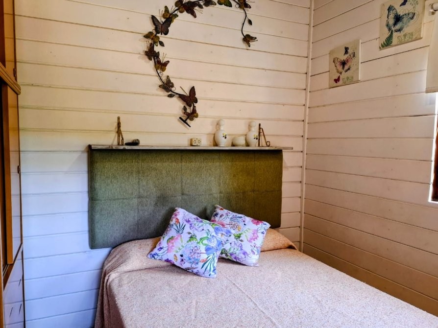 La edificación se encuentra sobre lomada, lo que le otorga una hermosa vista. Los dormitorios poseen revestimiento interior en madera con aislación térmica mediante lana de vidrio, mejorando el confort durante todo el año.