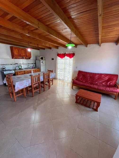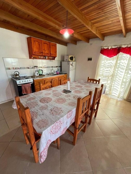 Casa vacacional, equipada y amoblada. Ideal para pasar unas vaciones en un ambiente tranquilo lejos del ruido de la ciudad. Cuenta con dos dormitorios, el principal con cama doble y el segundo cuarto con cuatro camas individuales. La propiedad esta a dos cuadras de la playa, tiene jardin al frente y Pileta descubierta con deck en el contrafrente, la cochera es amplia y todo se encuentra en excelente estado.