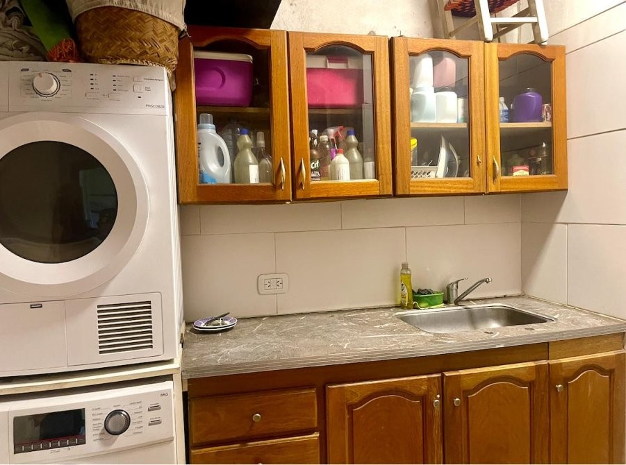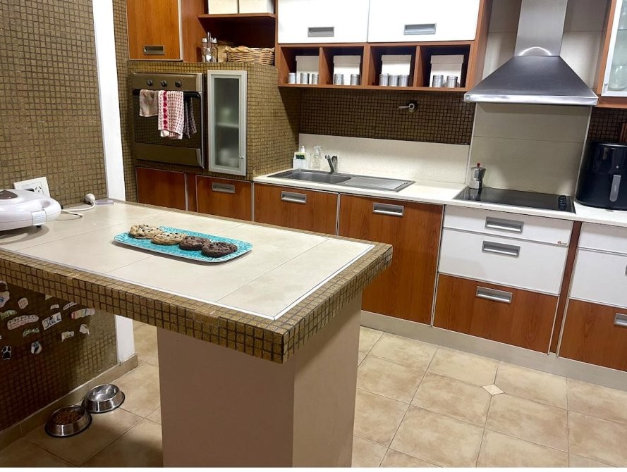 EN LA PLANTA BAJA SE ENCUENTRA LA RECEPCIÓN CON AMPLIO LIVING, DORMITORIO PRINCIPAL CON VENTILADOR DE TECHO, VESTIDOR, ESCRITORIO, BAÑO COMPLETO, UNA COCINA MUY LUMINOSA CON AIRE ACONDICIONADO, MUEBLES BAJO Y SOBREMESADA Y UNA BARRA DESAYUNADOR, LAVADERO CON MUEBLES DE GUARDADO Y UN QUINCHO SEMICUBIERTO CON PARRILLA Y COCINA.