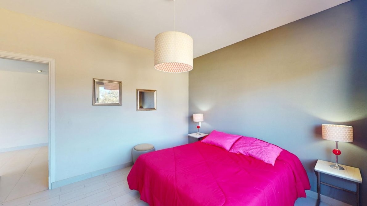 - Dormitorio con cama matrimonial con aire acondicionado.