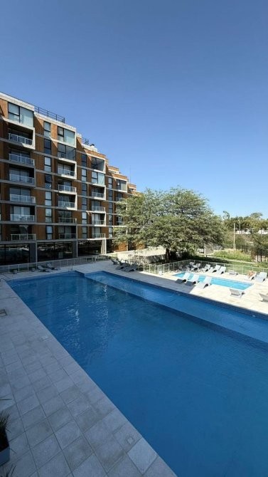 Cuenta con un dormitorio principal con vestidor y baño en suite, y un segundo dormitorio con placard, acompañado de otro baño completo. Las características adicionales incluyen calefacción, gimnasio, parrilla, quincho, sala de juegos, solarium, SUM, seguridad, apto mascotas, pileta, detector de incendios, y preinstalación de aire acondicionado.