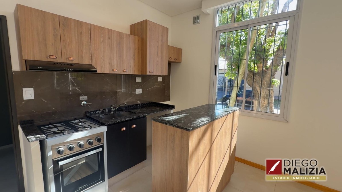 Cuenta con cocina equipada con mobiliario moderno y baño completo, con terminaciones funcionales y de calidad.