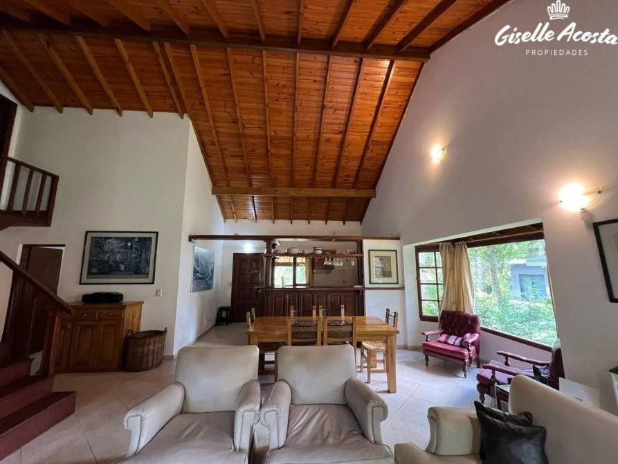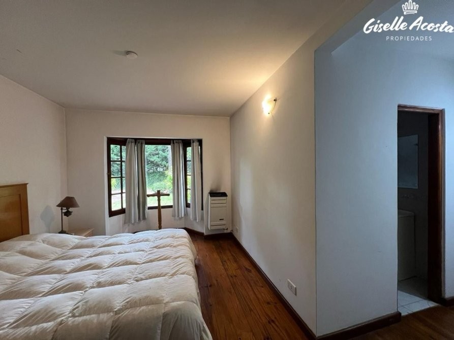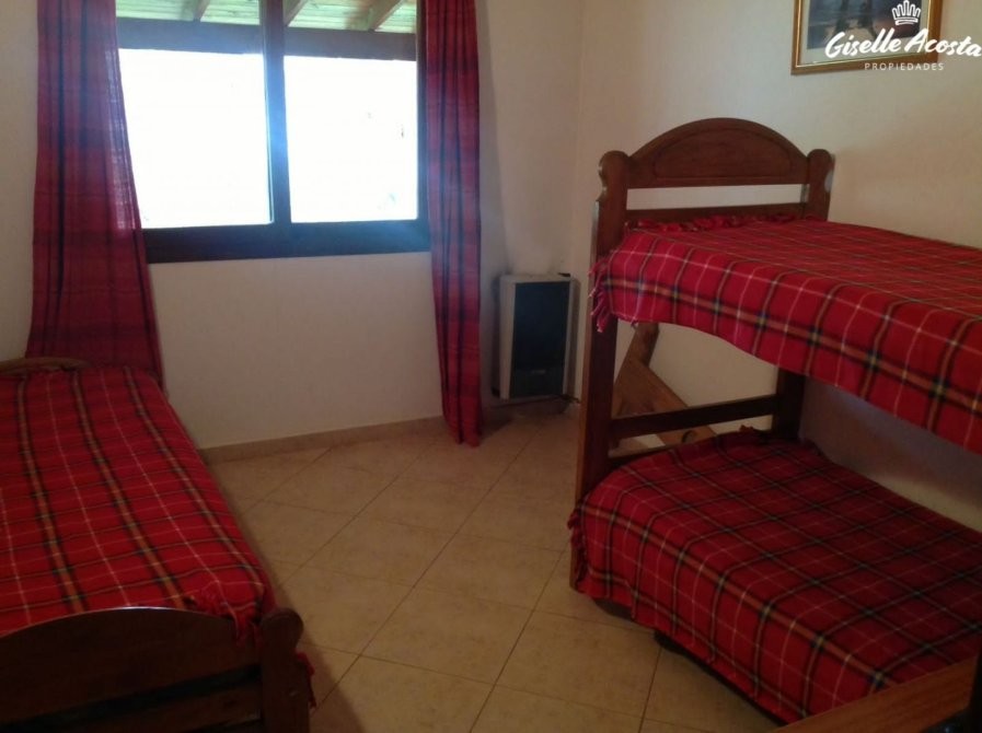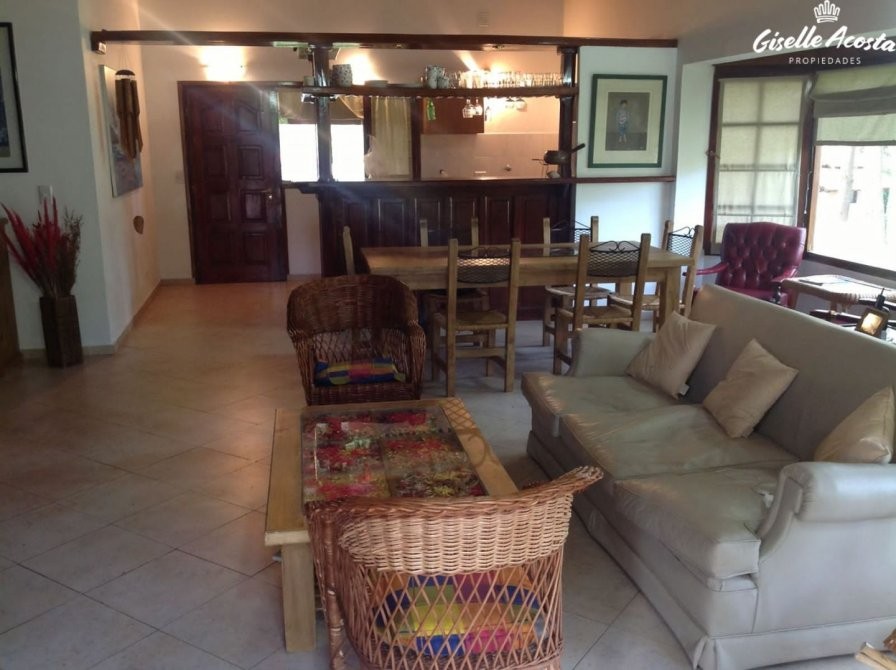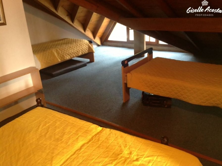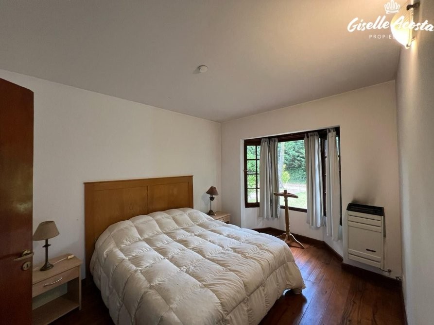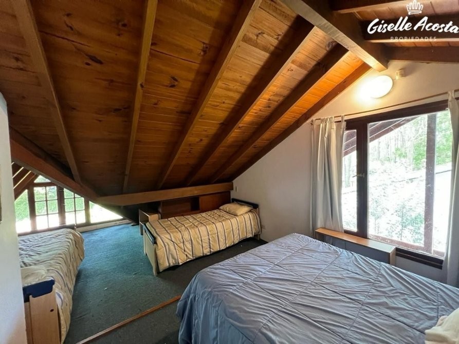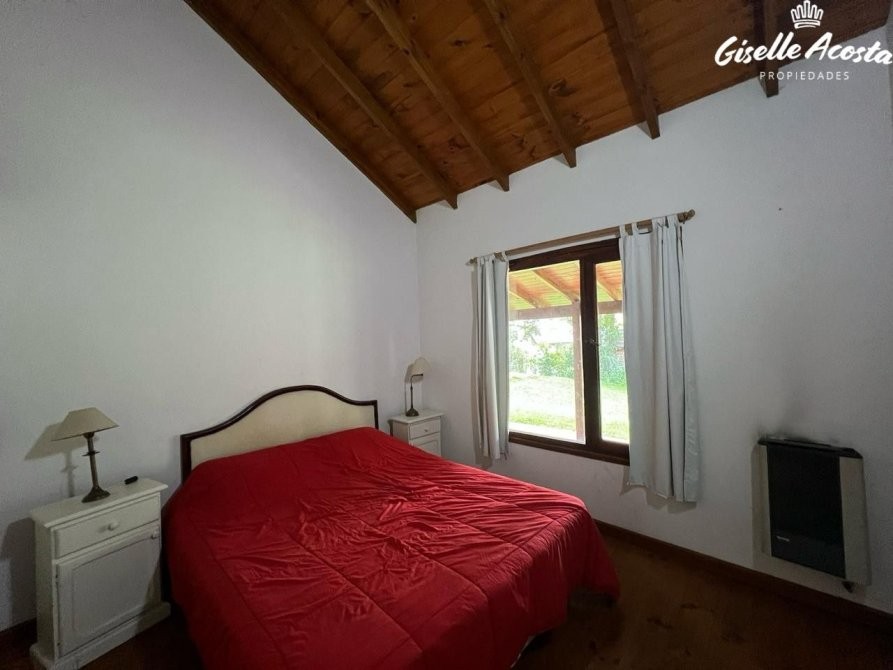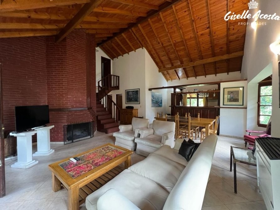 Gran chalet de 185 m2 aproximadamente, dispone de un enorme living y comedor con la cocina incorporada, un dormitorio en suite con vestidor, un dormitorio matrimonial, otro dormitorio con tres plazas, baño completo con bañera y en la planta superior tiene un play room con una cama matrimonial y dos camas mas de una plaza, la casa esta muy bien equipada, todo funciona perfectamente, tiene gas natural, wi-fi, alarma, estacionamiento cubierto para tres vehículos y un hermosísimo jardín perimetral y bien arbolado.
