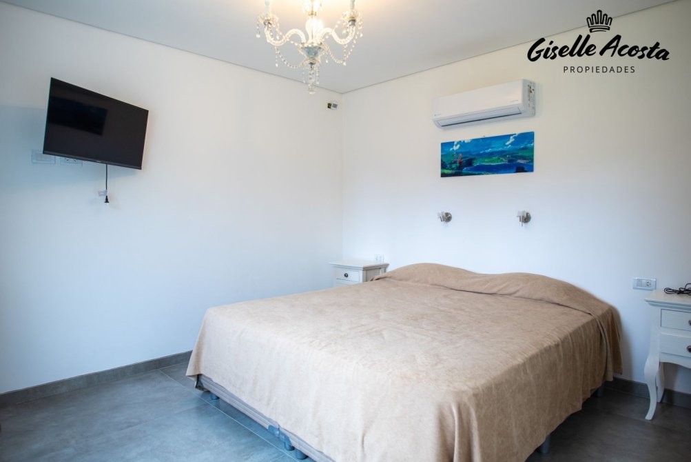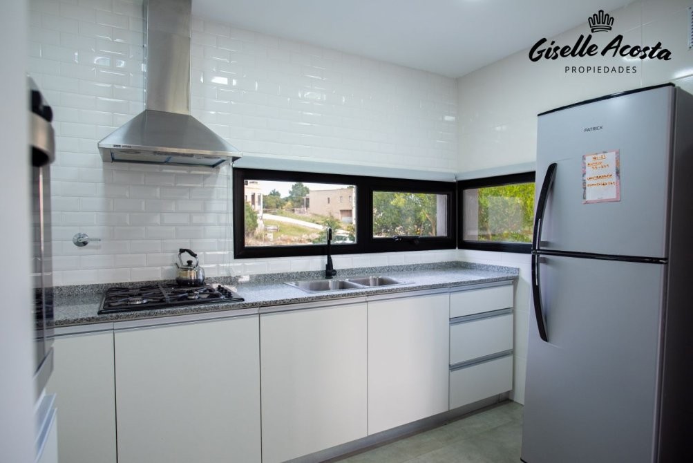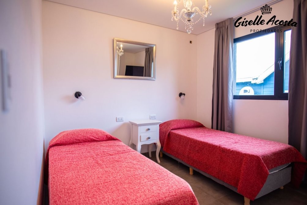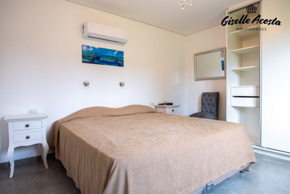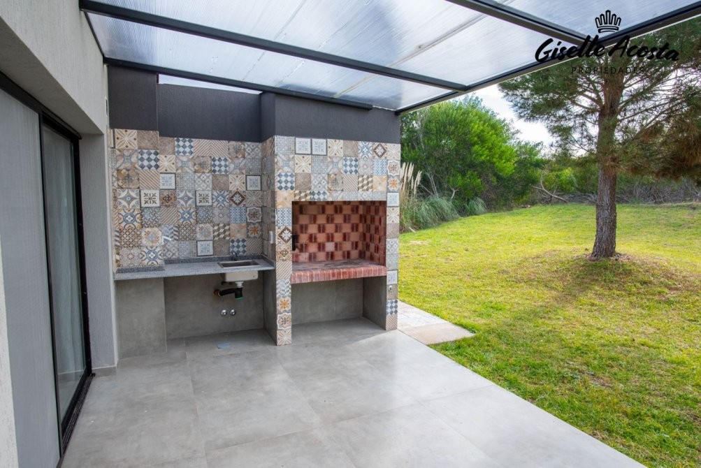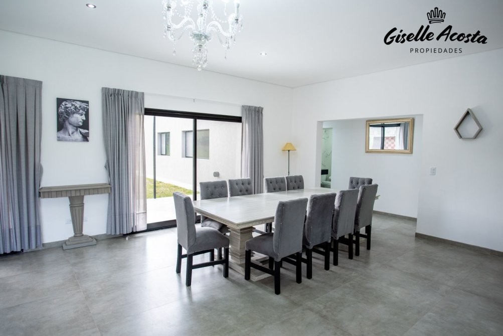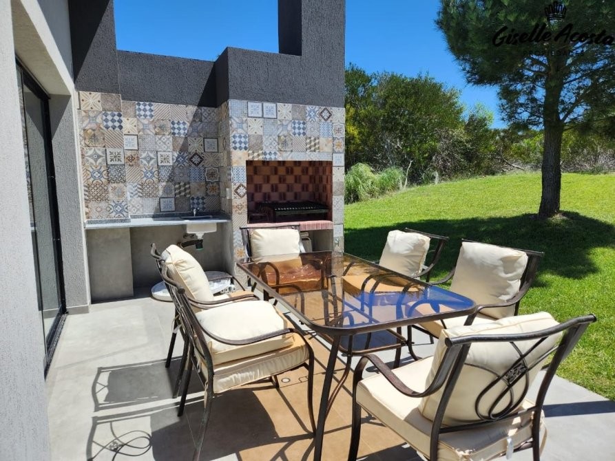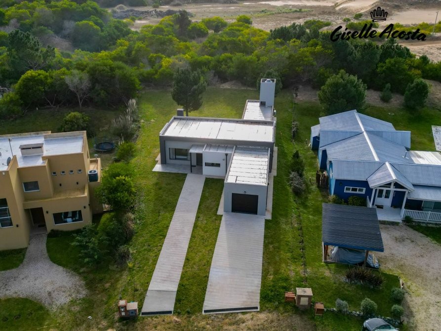 Casa a estrenar, con toilette de recepción, living, comedor y cocina en concepto integrado, muy bien equipada, de 4 dormitorios, una suite principal, dos estándar con dos plazas cada uno y que comparten baño completo, mas un ambiente anexo a la casa principal con una cama matrimonial y baño completo, posee gas natural, calefacción por tiro balanceado en todos los ambientes, garaje cerrado, galería cubierta con parrilla y jardín.