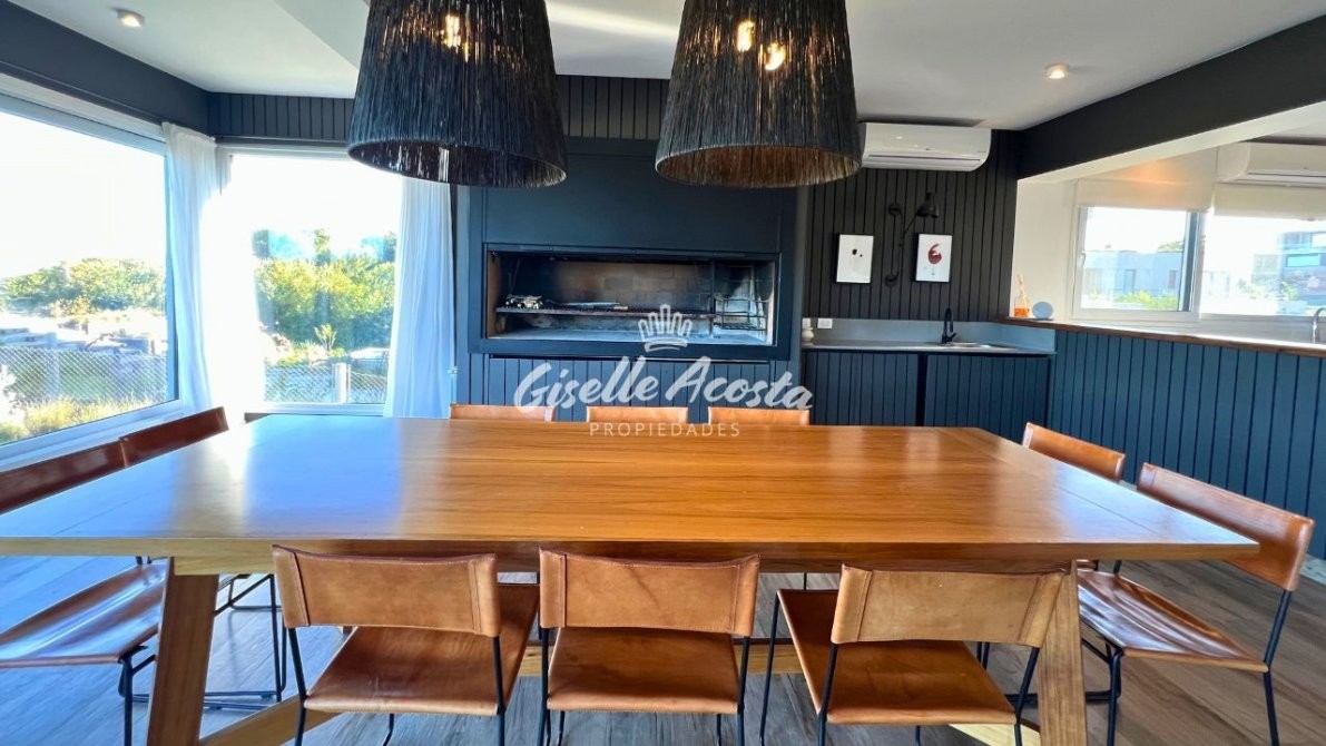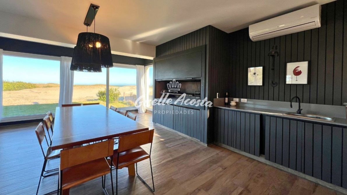 - Comedor tipo quincho con parrilla y vista al mar.