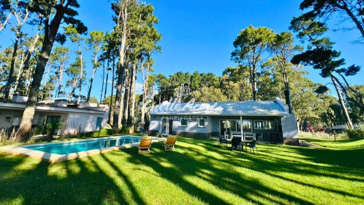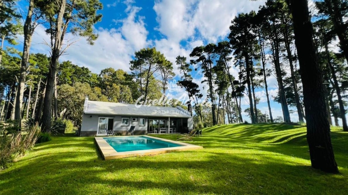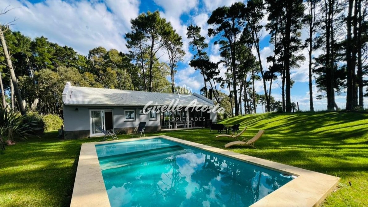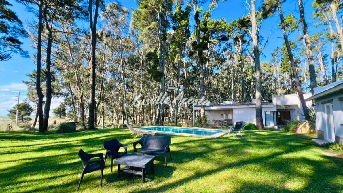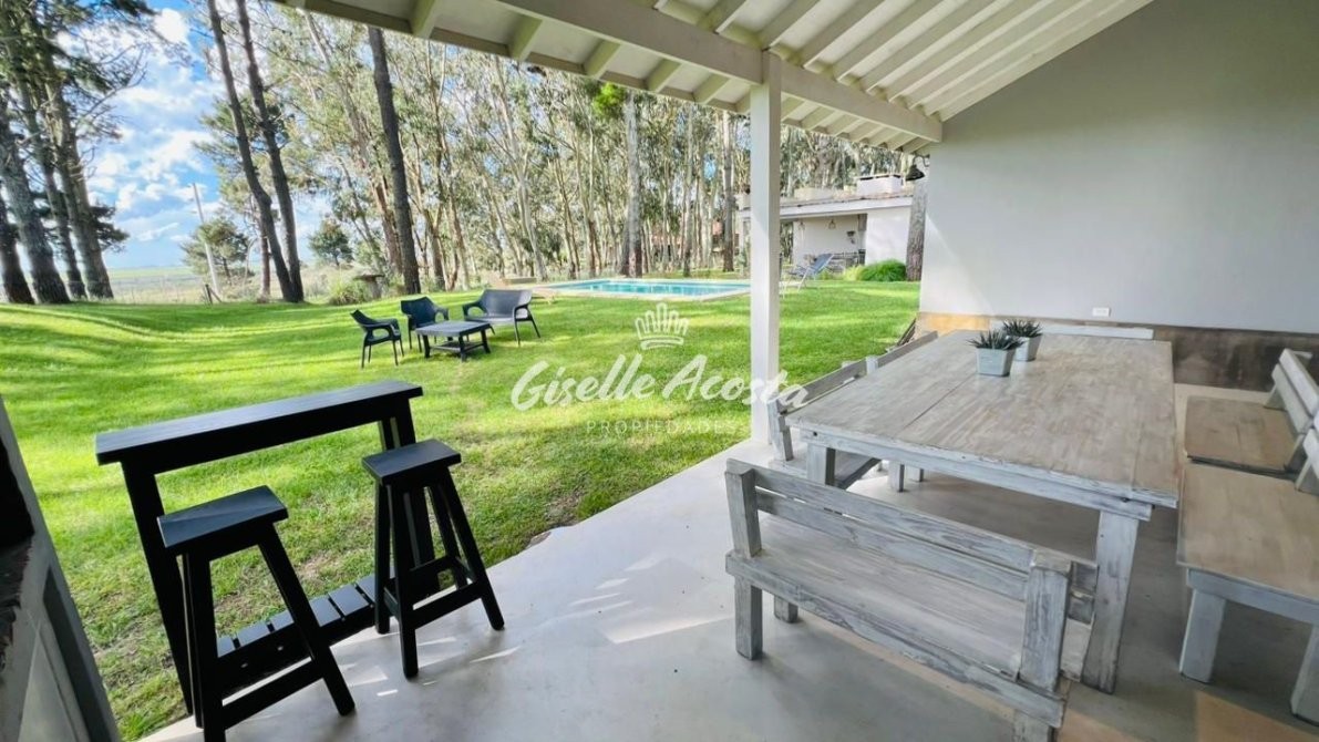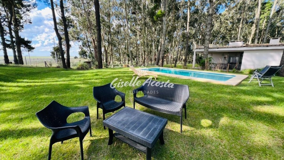 A 7 min de la playa... Casa para 6 personas con pileta, jardín cercado y todo parquizado. Rodeado de eucaliptos que lo hacen un paisaje envolvente.