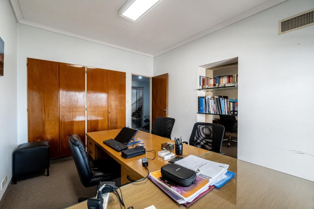 Actualmente funciona como sede de una empresa, pero su configuración permite una transformación sencilla y lógica a casa, aprovechando la amplitud de los ambientes, la circulación clara y la calidad constructiva.