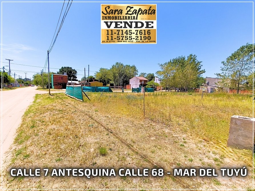 Calle 7 antesquina 68 Mar del Tuyú lote de terreno baldío VENDE SARA ZAPATA Inmobiliaria