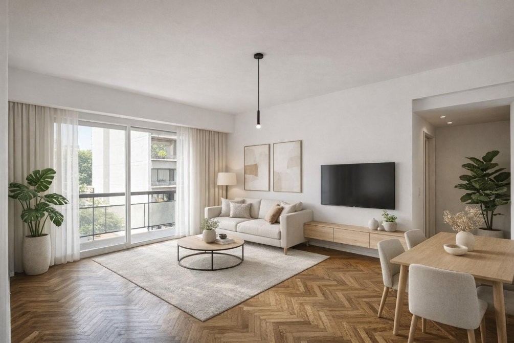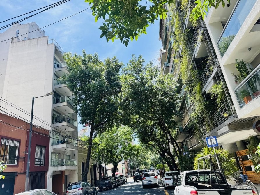 Descubra este encantador departamento de 2 ambientes ubicado en el corazón de Palermo Hollywood, en Bompland al 2200, Piso 5, al frente. Al ingresar, nos encontramos con un hall de entrada que ofrece la posibilidad de ser decorado con un mueble recibidor, brindando una cálida bienvenida. La cocina, independiente y luminosa, cuenta con ventana al exterior, alacenas funcionales y una mesa desayunadora, ideal para disfrutar de sus comidas diarias.